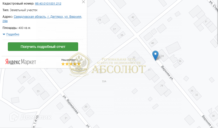 Арт. 40492746 Продается земельный участок в Дегтярске на газифицированной улице на Верхней, 4 сотки.