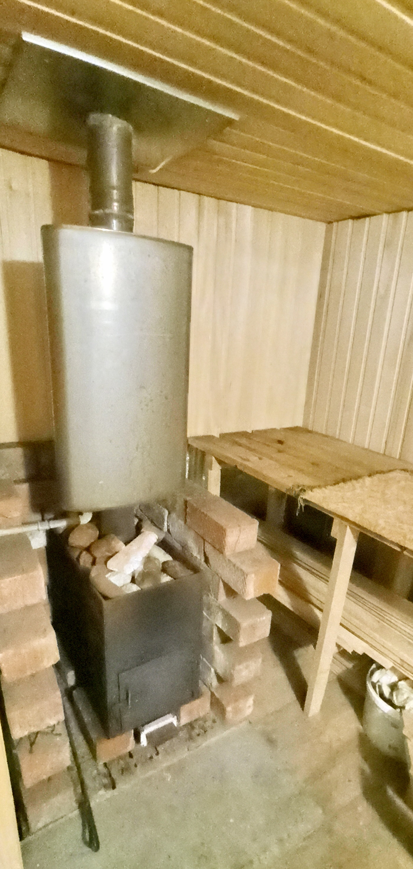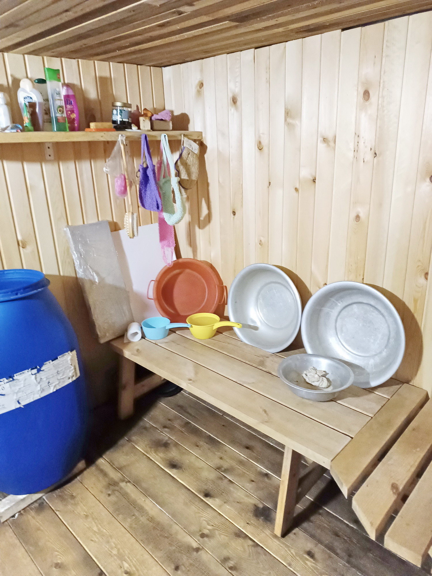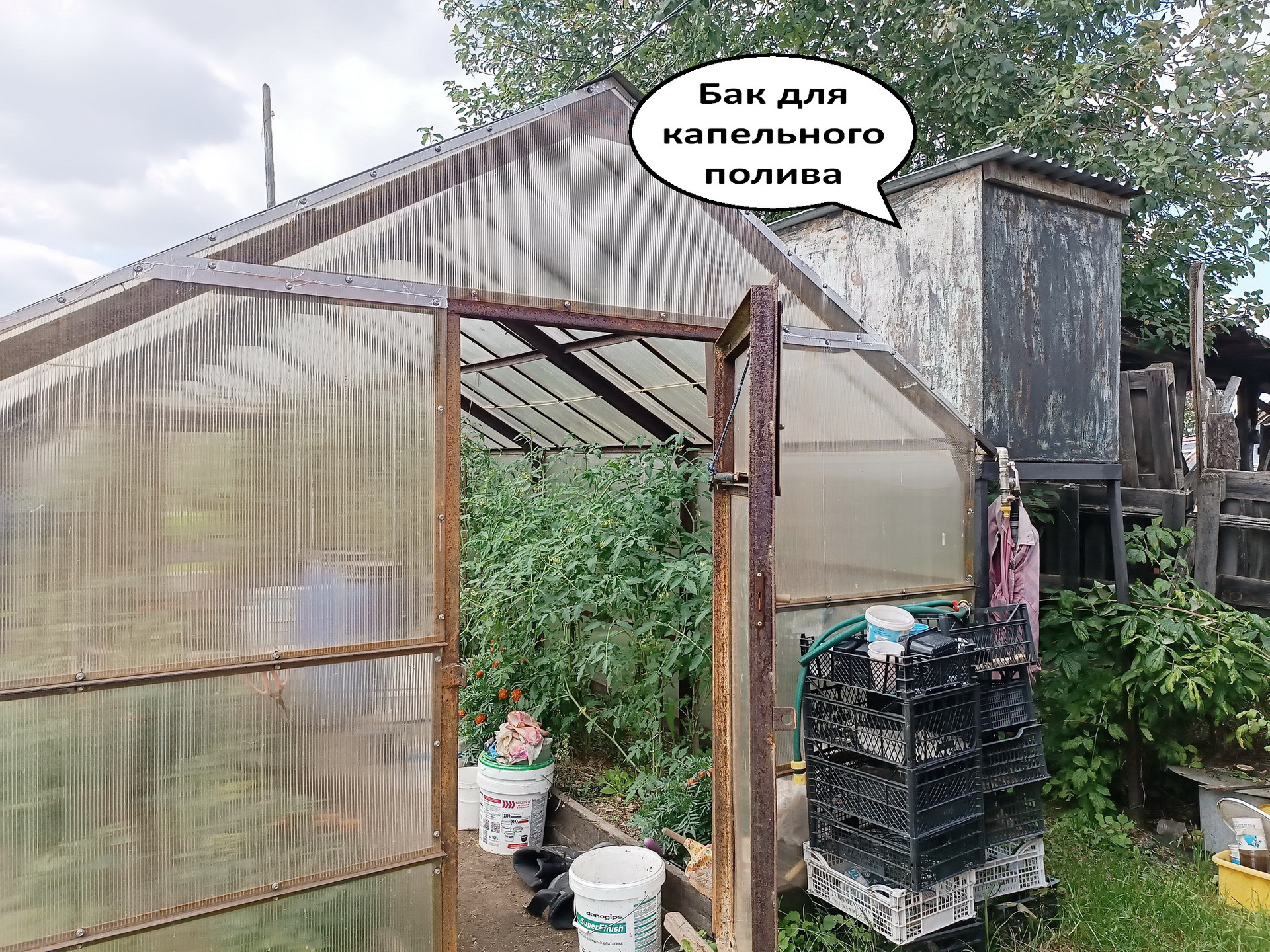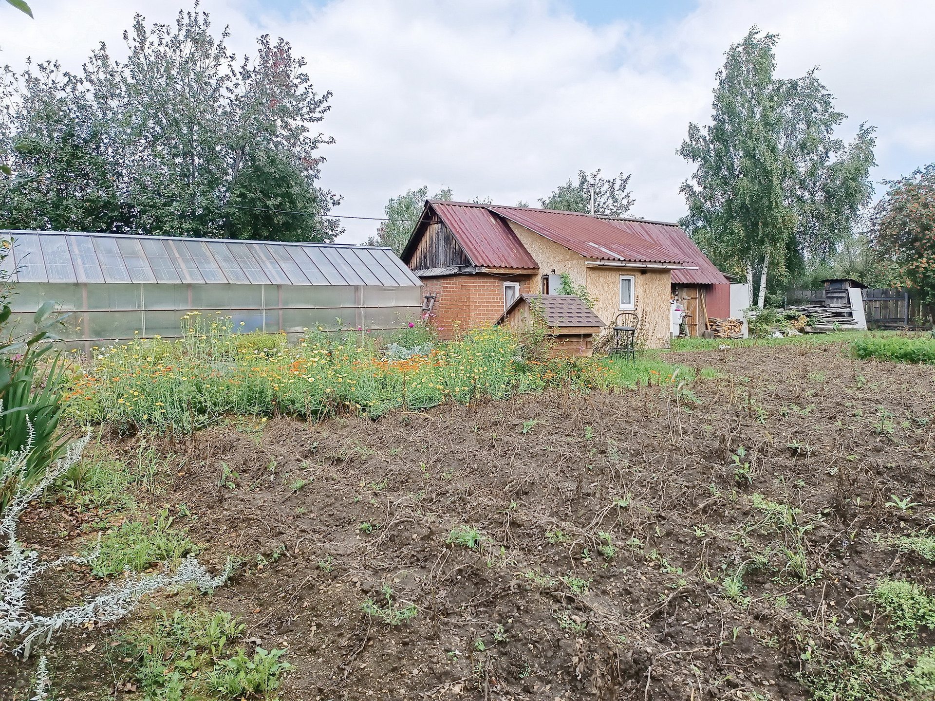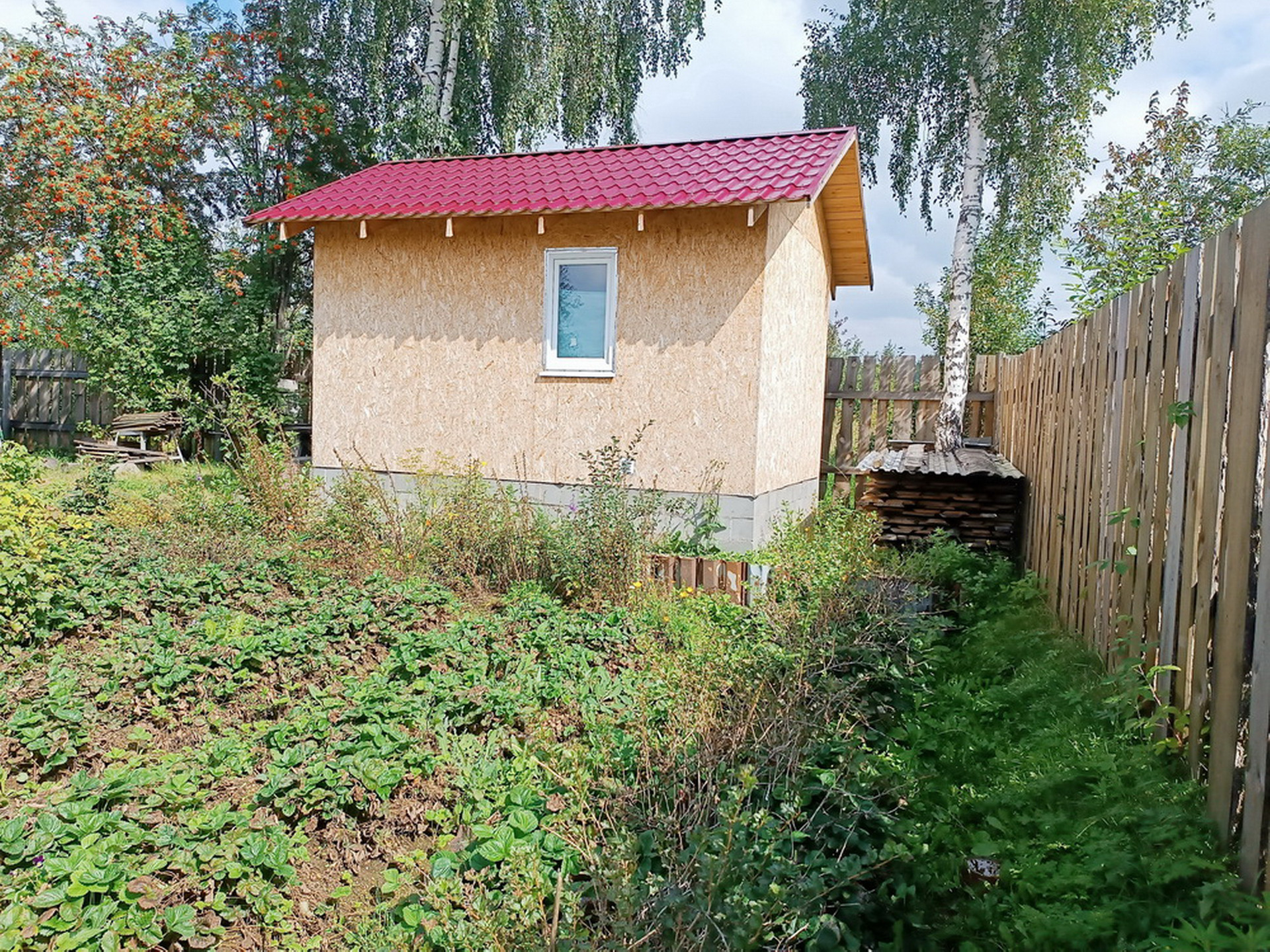 На участке есть баня (парилка + помывочная + комната отдыха), дровяник, овощная яма с сараем над ней, беседка, мангал, стойка для гамака, фундаментные блоки для построек.