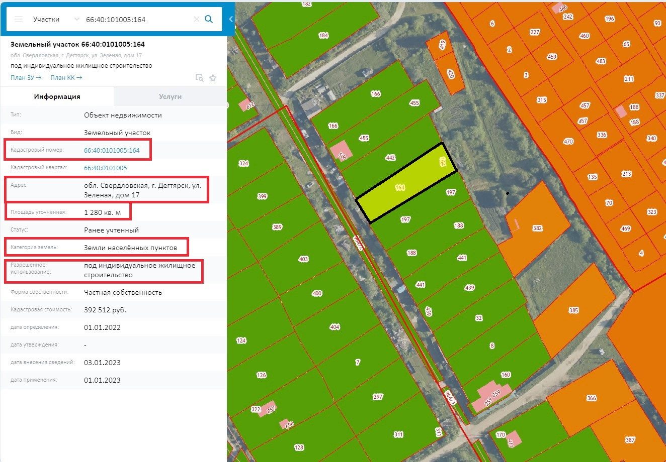 Кадастровый номер участка: 66:40:0101005:164.