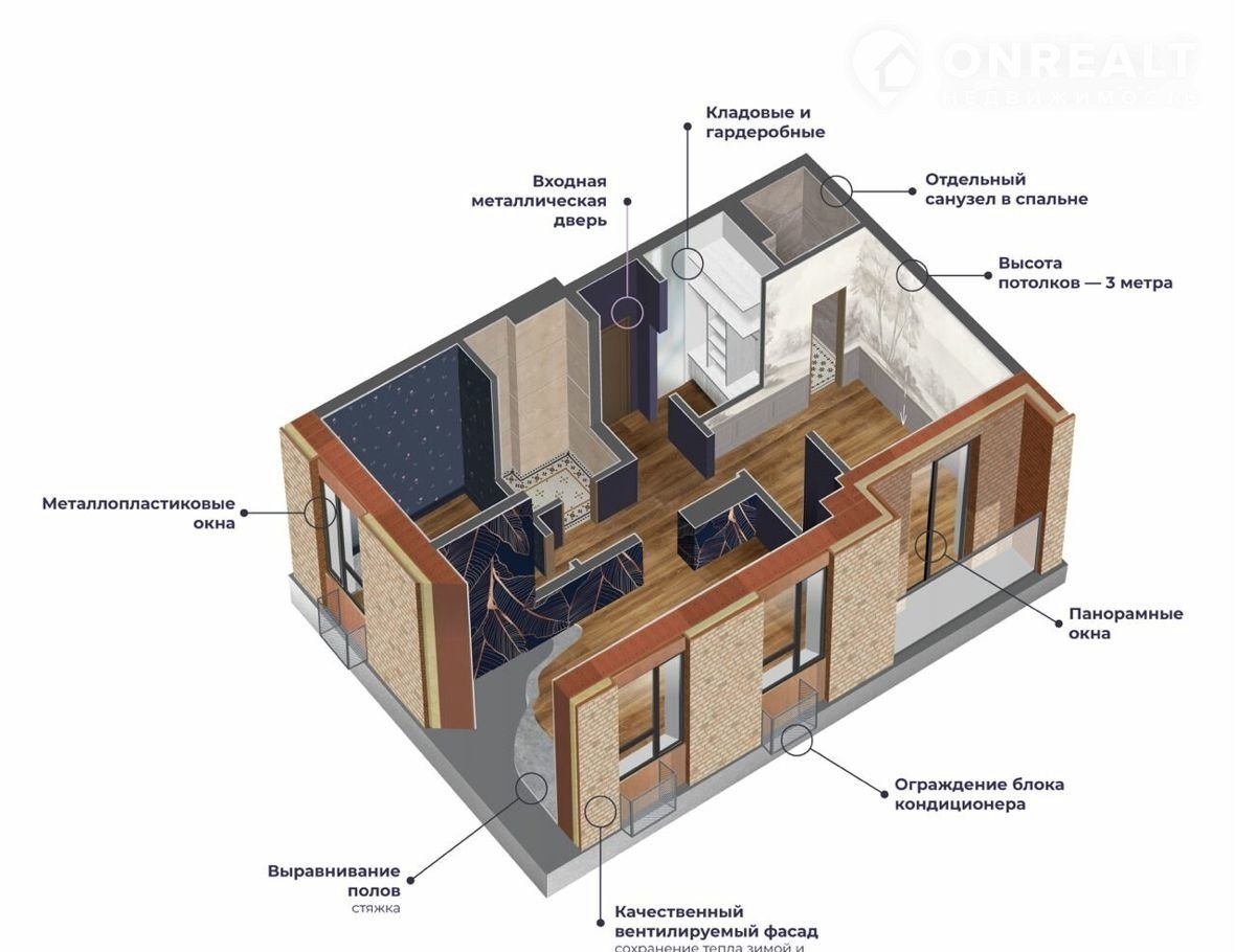 • Панорамные окна и высокие потолки