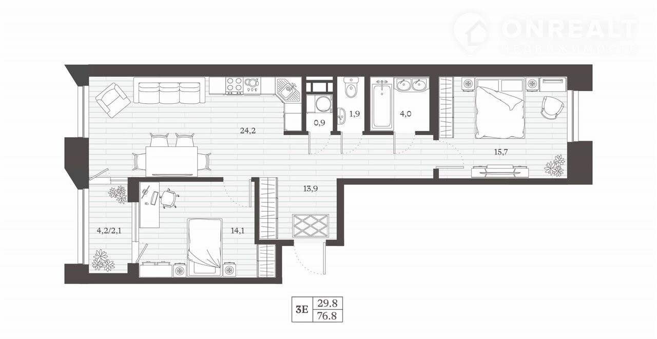 Жилая площадь 29.8 м2