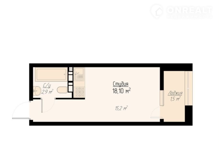 Жилая площадь 15.2 м2