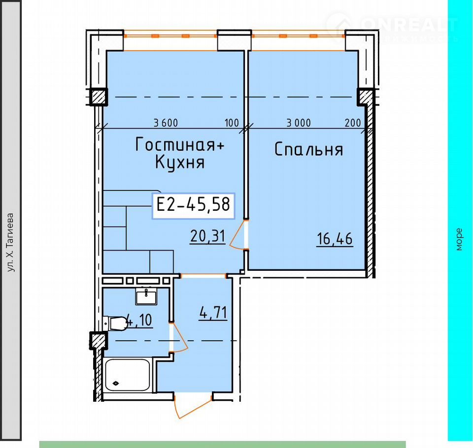 Общая площадь 45.6 м2