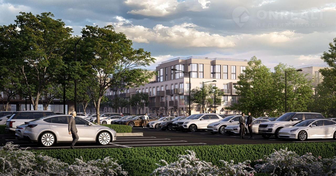 - Просторные дворы без машин – только 21% территории застроено, остальное – зелёные зоны, паркинг, прогулочные аллеи.