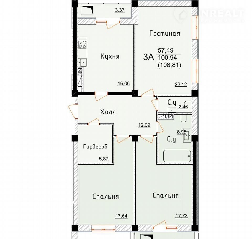 Общая площадь 108.8 м2