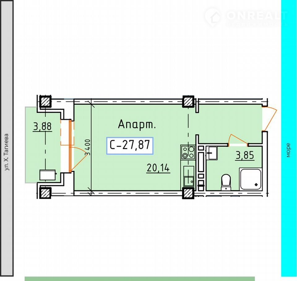 Общая площадь 27.9 м2