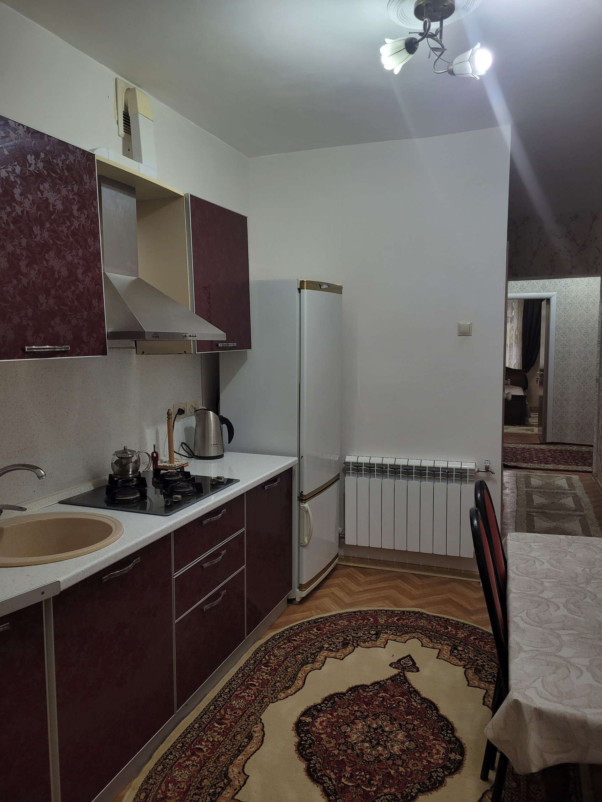 Утная квартира в центре города,в спокойном районе. Практически все достопримечательности находится  рядом. До моря 15 мин пешком, до Набережной 25 мин пешком, до фонтана 10 мин пешком, и 5 мин пешком до ул. Мамедбекова и прилегающей к ней крепостной стеной, от туда можно прогулятся по старому городу с выходом на Крепость Нарын Кала. Квартира чистая , после ремонта. Всё необходимое есть для проживания. Горячая холодная вода 24/7. Автономное отопление. Есть гараж и маленький дворик.