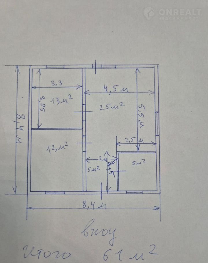 Общая площадь 61 м2