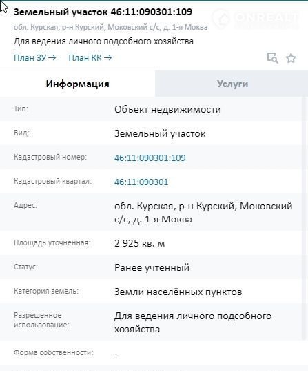 Стоимость недвижимости: