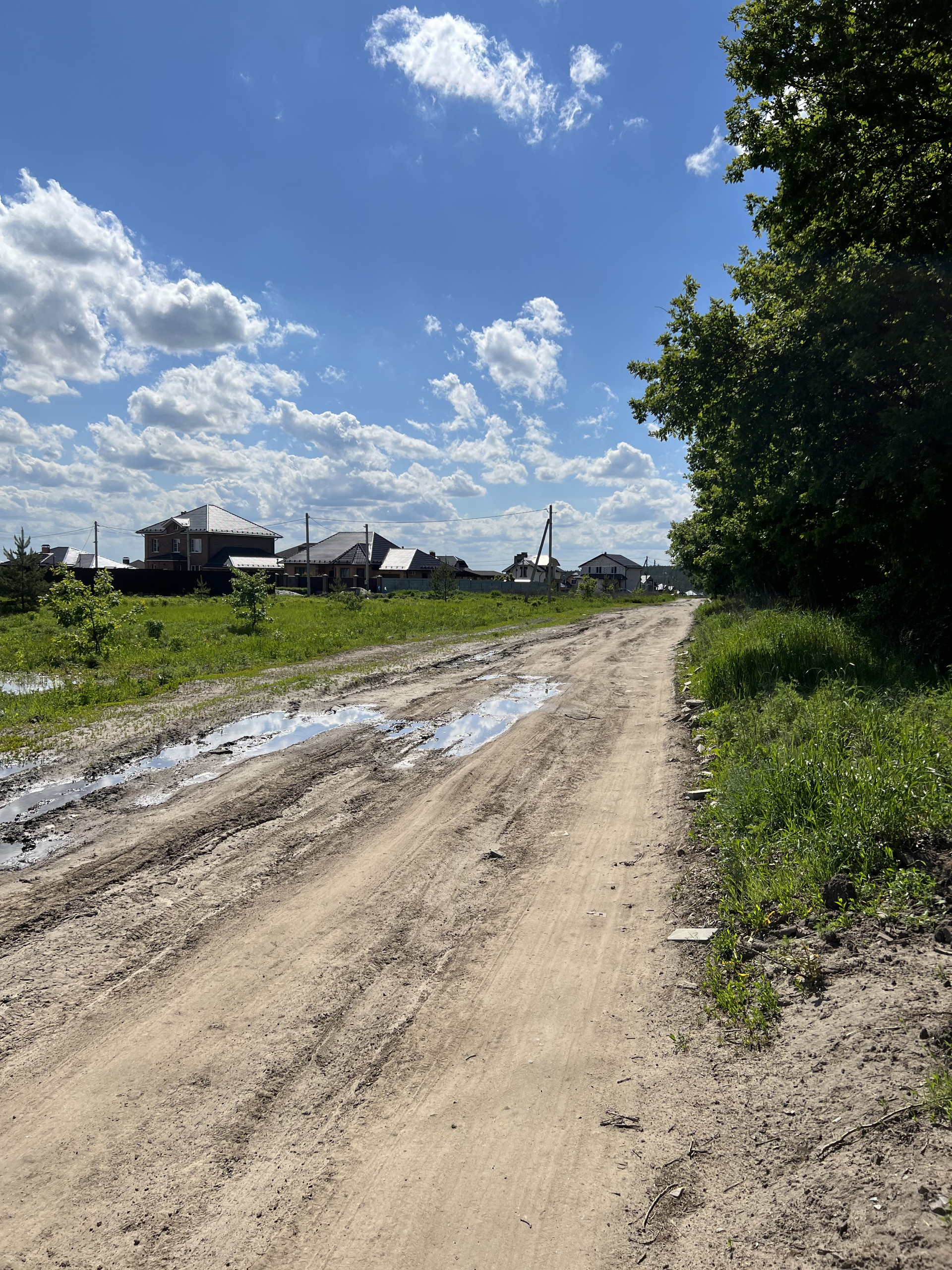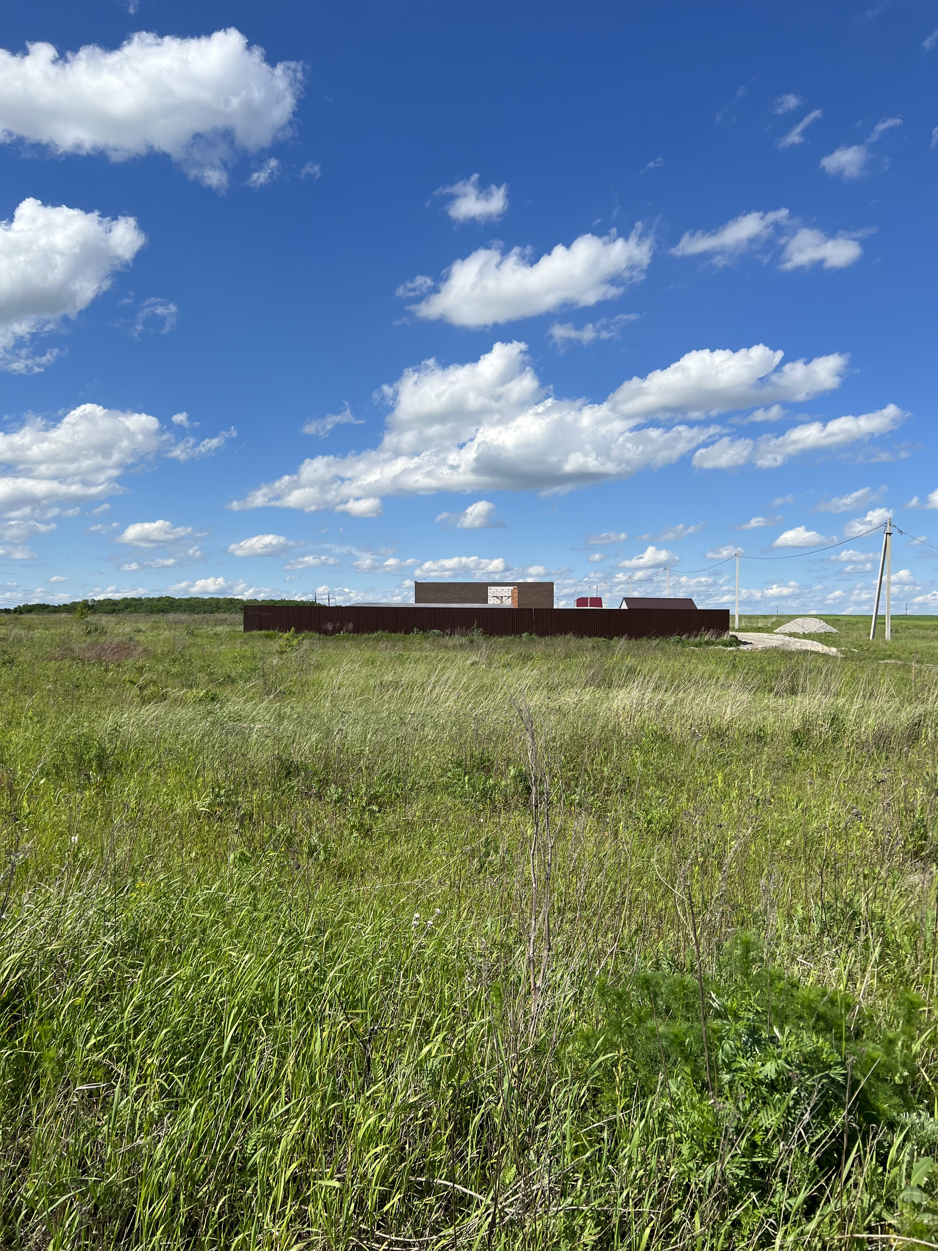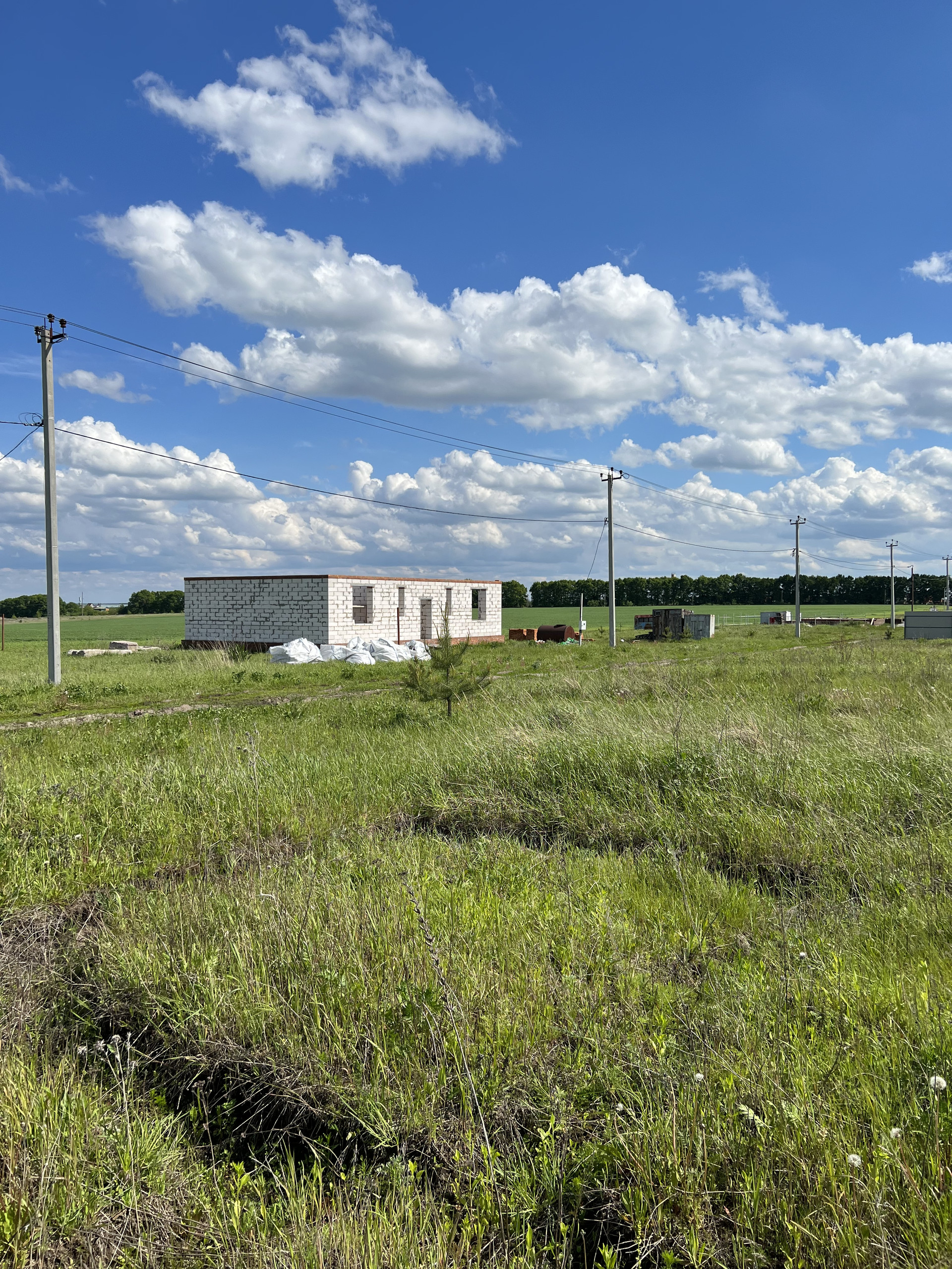 Первая половина улицы уже практически полностью заселена, наши соседи рядом с участком тоже строятся.