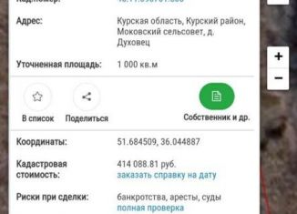 Продается земля ИЖС от 10 до 12 сот . В собственности 21 участок. На кадастровом плане за номерами от 2000 до 2021 Свет, Газ, Вода, жилые дома рядом. До центра Курска 15 минут на машине. Рассматриваем варианты продажи опт и розница. 65000 за сотку |