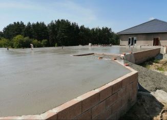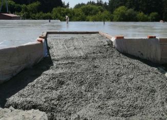 Участок прямоугольный, сделан цоколь под дом, есть гараж и подвал, залиты полы. Свет подведен. Есть блоки ФБС. Есть фото всех этапов строительства. |