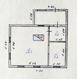 Дом 48,4кв/м, две жилые комнаты (27,2 кв/м и 7,6 кв/м), кухня 4,6 кв/м.
