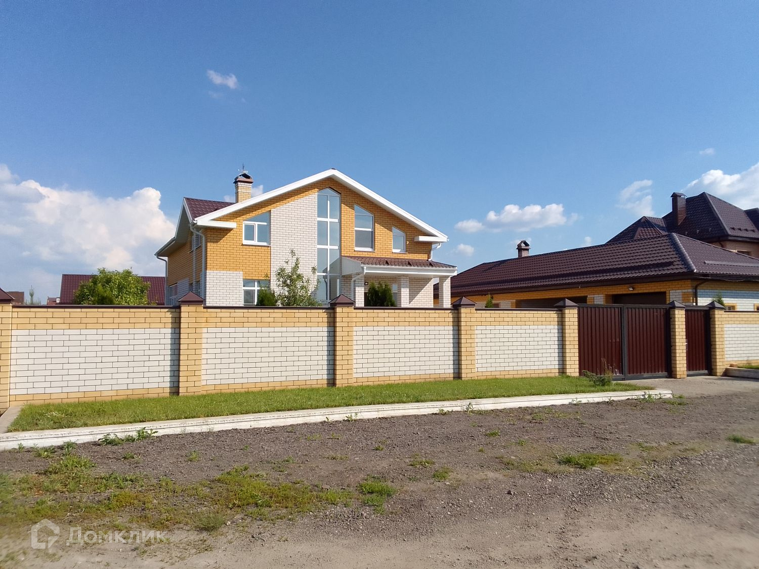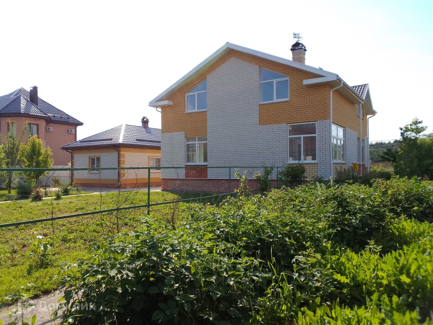 Участок по всему периметру огорожен капитальным кирпичным забором.