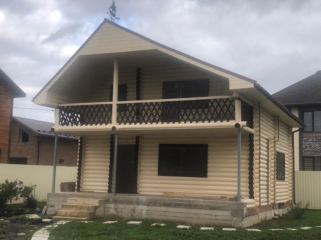 Продается земельный участок площадью 738 кв.м с построенным двухэтажным домом 130 кв.м из оцилиндрованного бревна. Зарегистрирован как нежилое строение (баня). Подходит для круглогодичного проживания. В доме подвал 50 кв.м., вход в подвал из дома. Фундамент блочный. Дом дополнительно утеплен изнутри.  Есть балкон на втором этаже и терраса на первом этаже. На втором этаже 3 комнаты и сан. узел.  В двух комнатах на втором этаже выполнен ремонт. На первом этаже Кухня гостиная, хол , комната под бойлерную с сан узлом. Окна - стеклопакеты. На окнах первого этажа и второго антивандальные, вентилируемые ставни. Ступени к террасе бетонные. Есть строительные материалы (утеплитель, плитка керамогранит, кирпич, тротуарная плитка, брусчатка.)Электричество подведено к дому и частично сделана разводка по дому. На участке колодец, от колодца к дому и беседке проложен водопровод зимний. Есть септик. По дому разводки воды пока нет. На участке построена беседка с кованным мангалом. Имеется бетонный фундамент под гараж с хоз. блоком, а также фундамент под еще один дом. По периметру забор из металла профиля. Соседи проживают круглогодично. Планируется газификация СНТ.