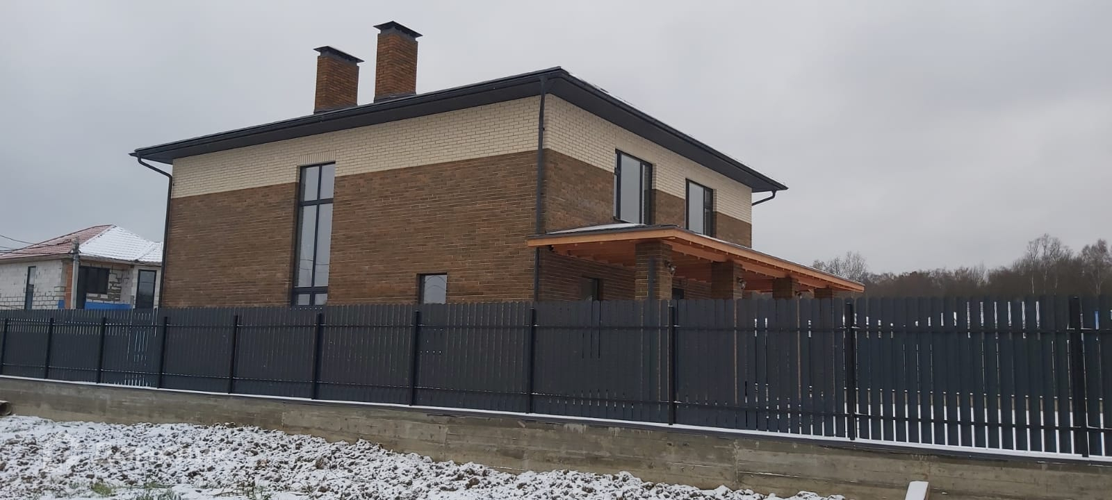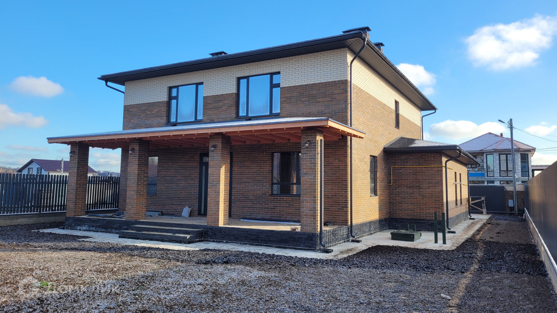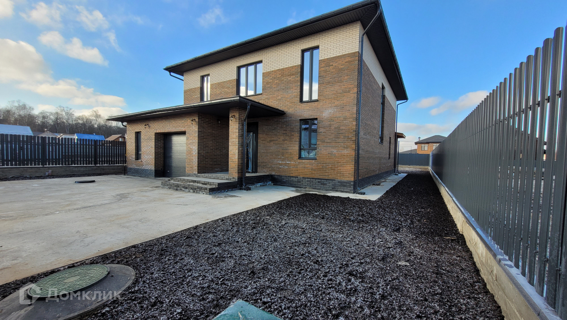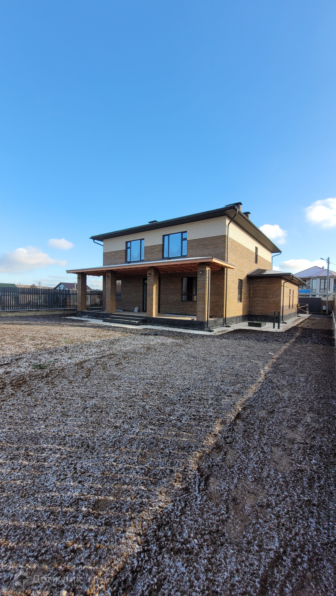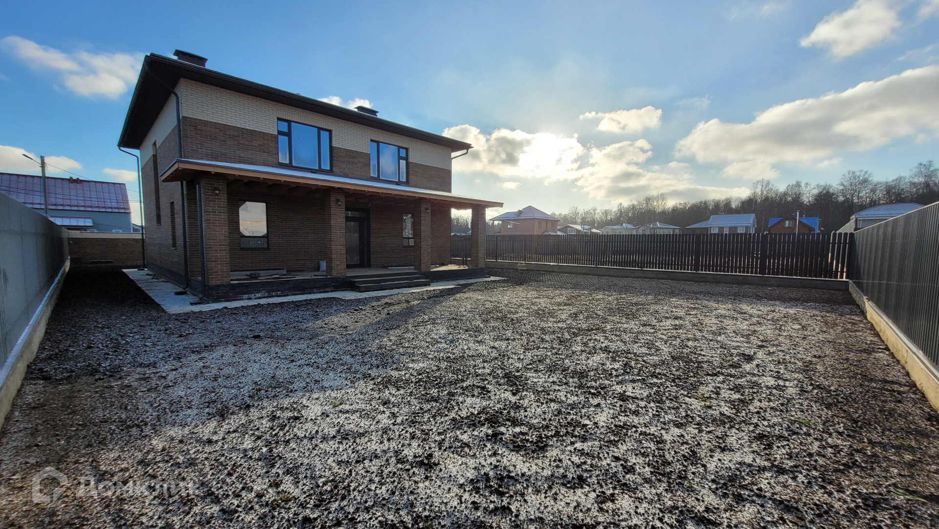 Ровный участок 8 соток, огорожен забором. Есть дренажная система. Перед домом есть достаточное пространство для навеса для нескольких машин.