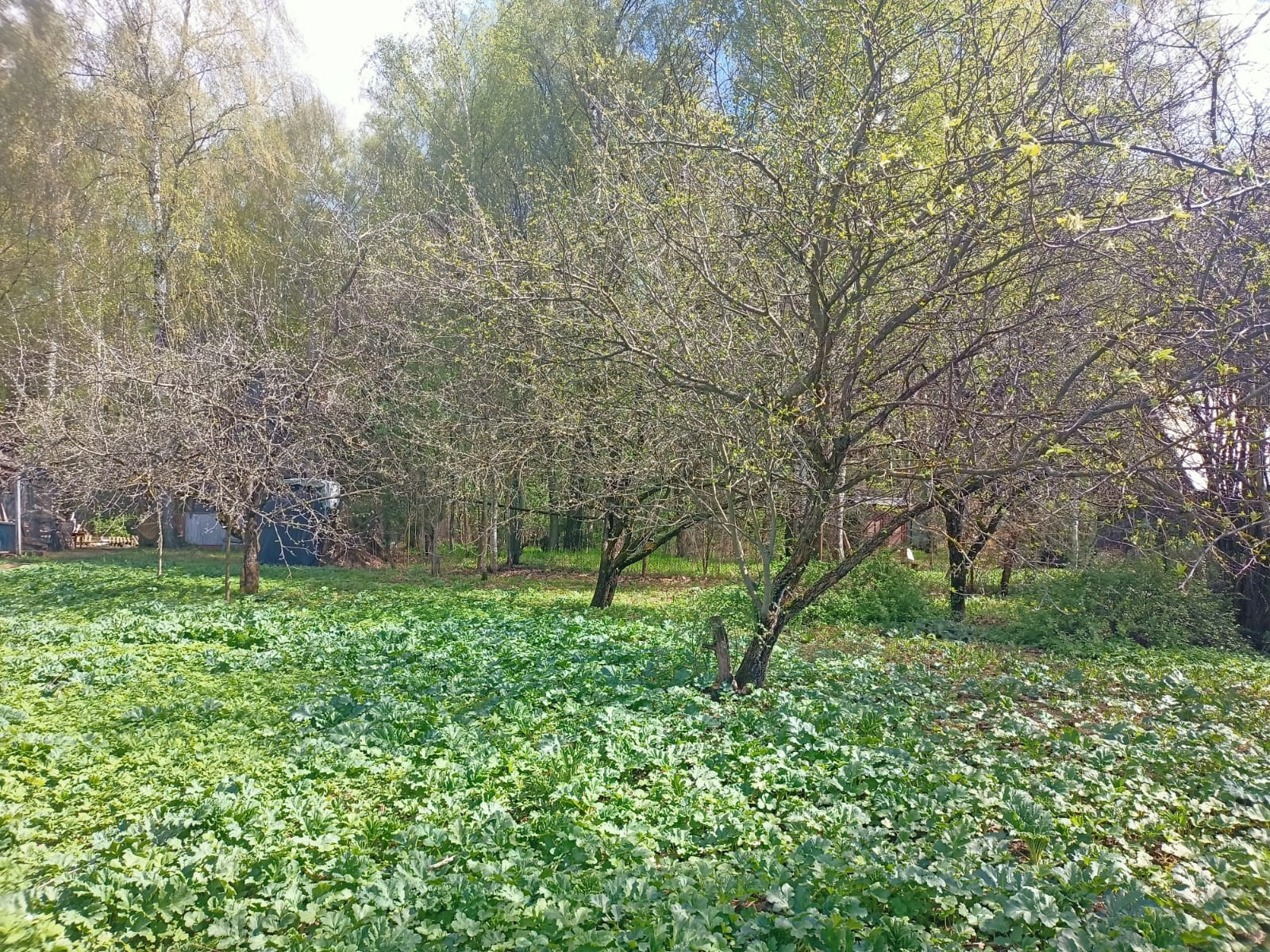 На участке плодовые деревья.