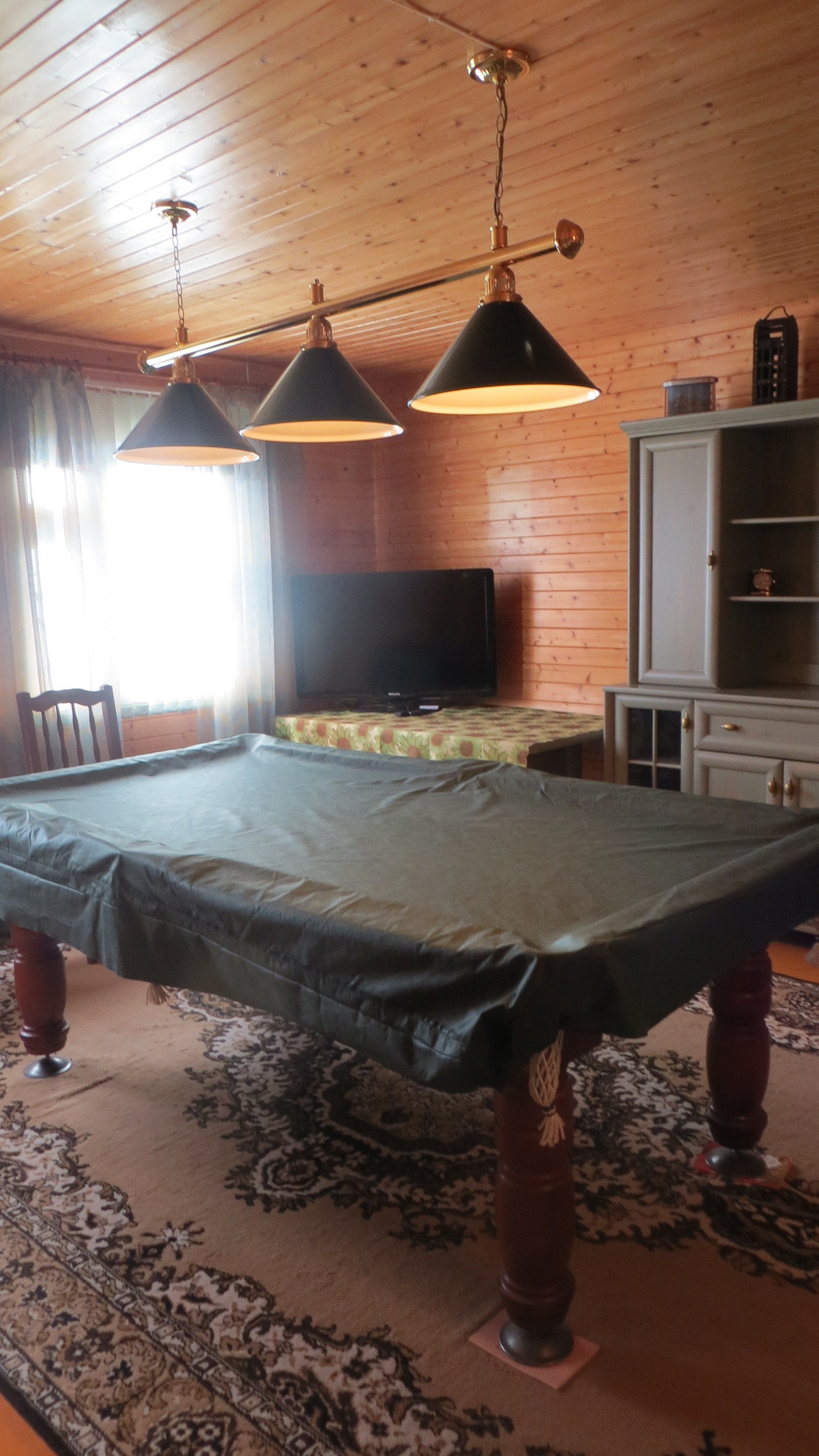 Светлая веранда, мангал, кухня, сан узел. Баня с душевой и комнатой отдыха. На 2 этаже бильярдная, спальня детская, чердак.