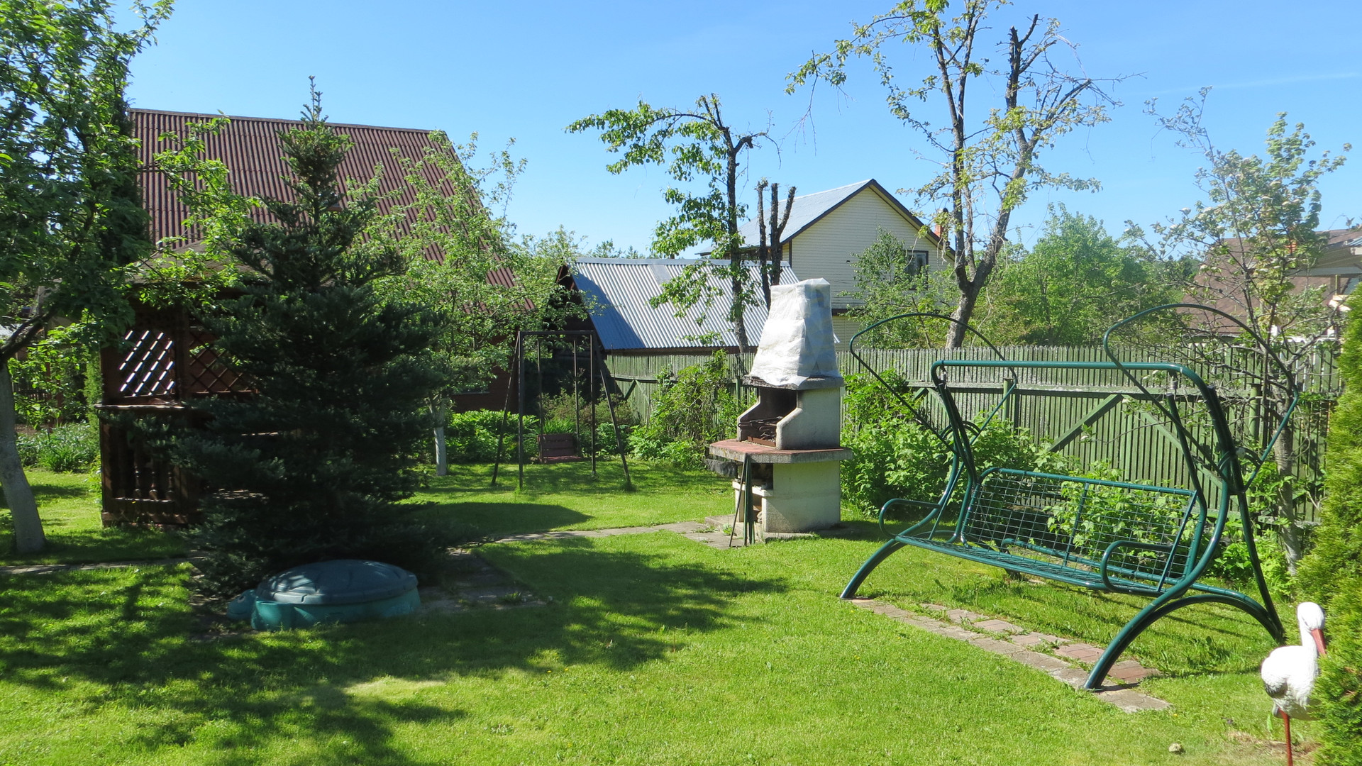 Зоной отдыха: беседка, барбекю, детские качели, песочница.