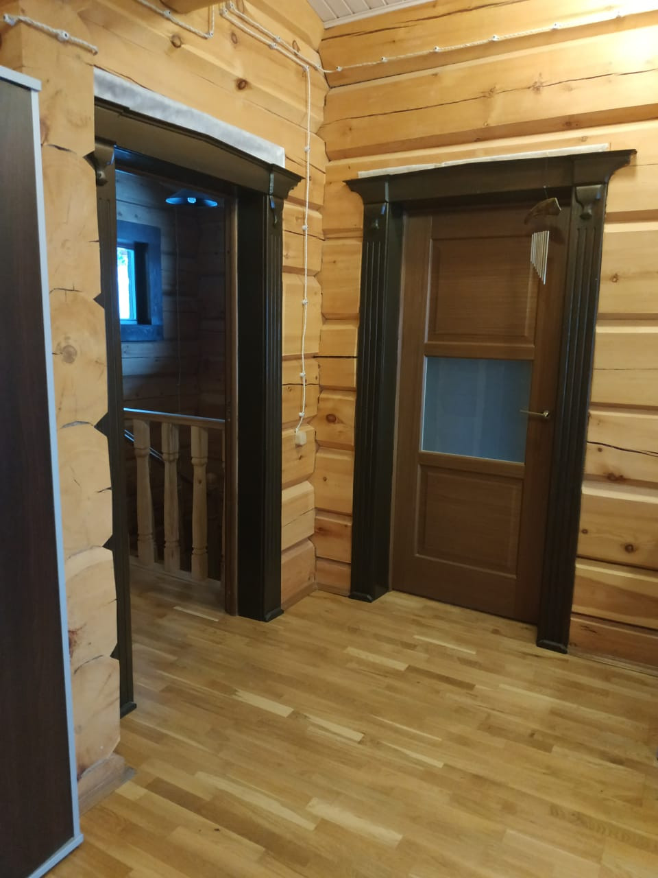 алтайского кедра, диаметром 40 см, доставленного из горных районов Алтайской республики. Входная группа и гостевой дом срублен на территории Архангельской области фирмой Деревянное зодчество методом ручной русской рубки из северной архангельской сосны диаметром 35 - 40 см.