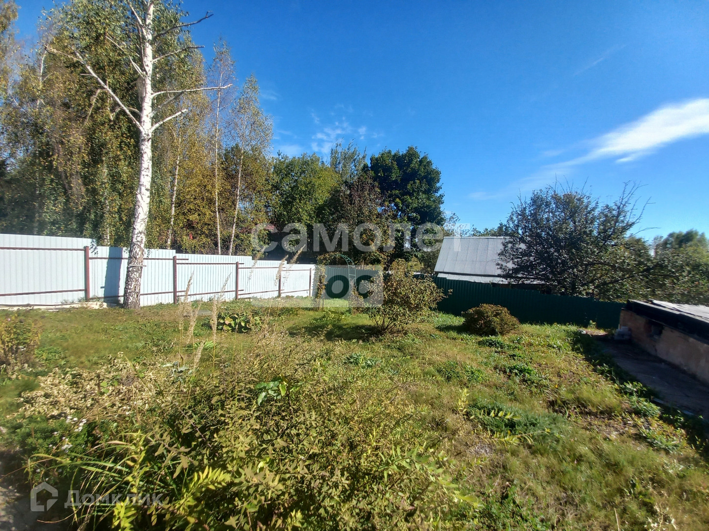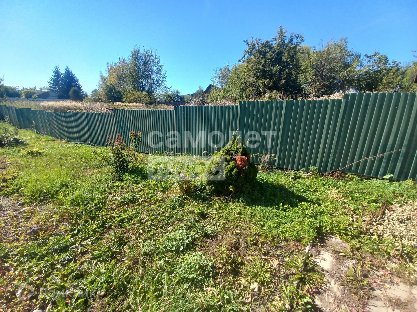 Участок прямоугольной формы огорожен со всех сторон проф настилом.