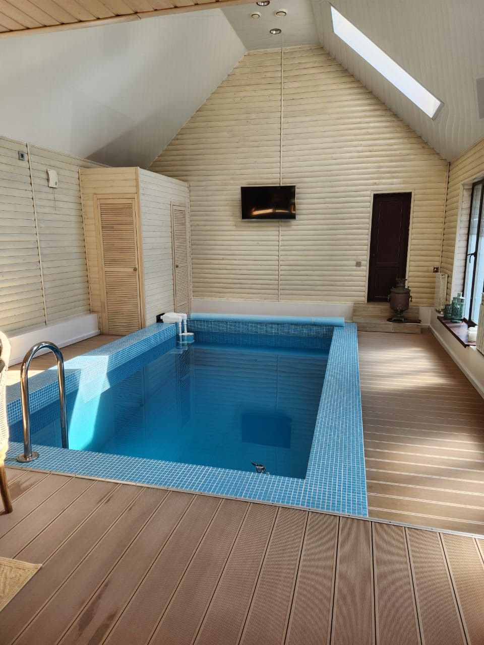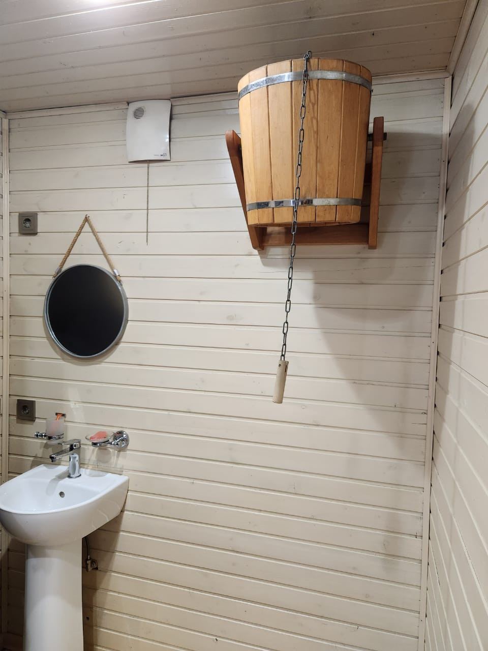 - деревянный рубленный банный комплекс в русском стиле с парной, помывочной и большим бассейном с системой очистки, с газовым отоплением, горячей и холодной водой.