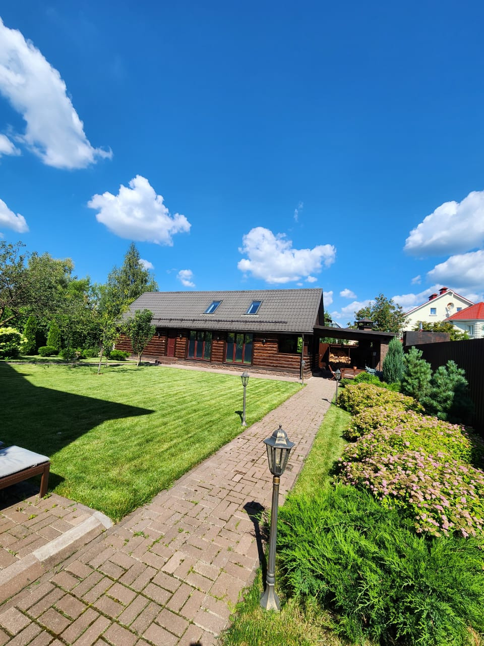 - земельный участок 9.5 соток ровный, прямоугольной формы с ландшафтным дизайном, зонирование, множество кустарников и деревьев, площадка перед домом выложена тротуарной плиткой. Автоматическая система полива. Обнесен кирпичным забором с калиткой и автоматическими воротами.