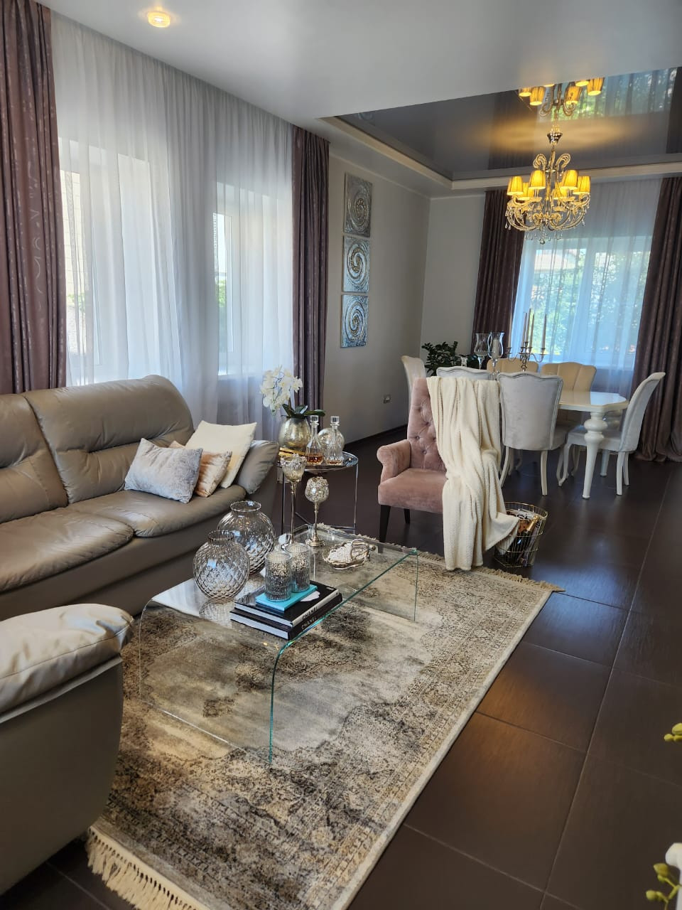 В доме 4 спальни, кабинет, 3 туалетные комнаты (душевая кабина с функцией хаммама), кухня - столовая, гостиная, гардеробная, зона для занятия спортом на цокольном этаже, кладовая, техническое помещение с газовым котлом, бойлером, на 2 этаже летняя терраса, дорогая деревянная лестница, водяные теплые полы. В доме выполнен качественный дизайнерский ремонт с использованием дорогих европейских материалов. Мебель и техника полностью переходит новым собственникам. Дом расположен на тихой, полностью застроенной улице, рядом с речкой и лесом, приличные, порядочные, дружные соседи. Продажа в связи с переездом в другой город.
