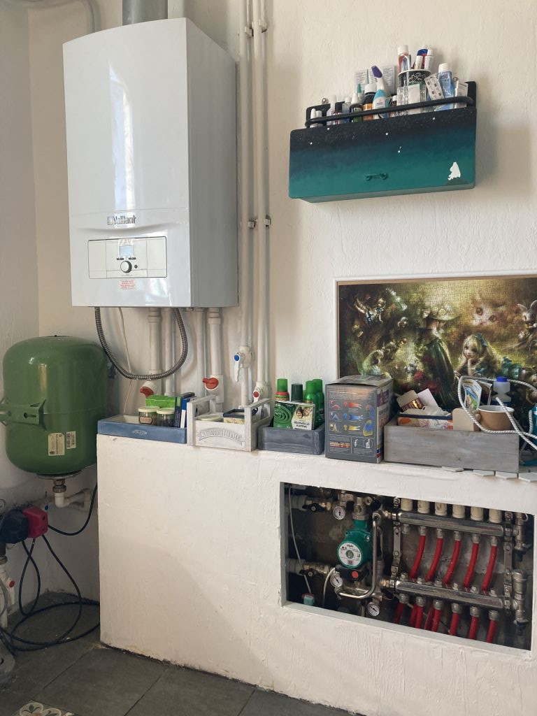 Отопление - газ, настенный газовый котёл на 24 кВт, тёплые полы по всему первому этажу (кроме спортзала), ванная второго этажа, батареи.