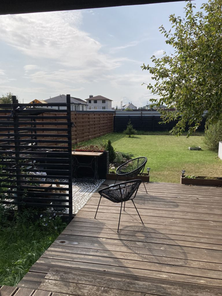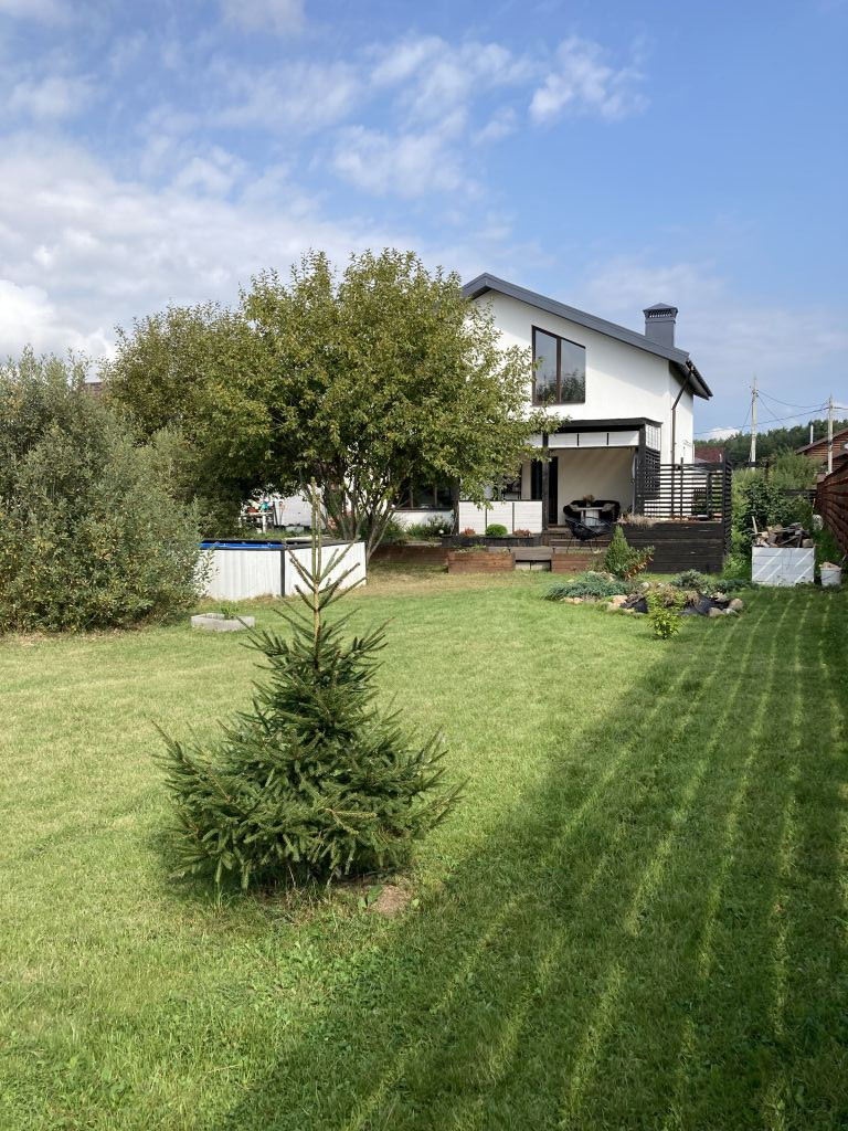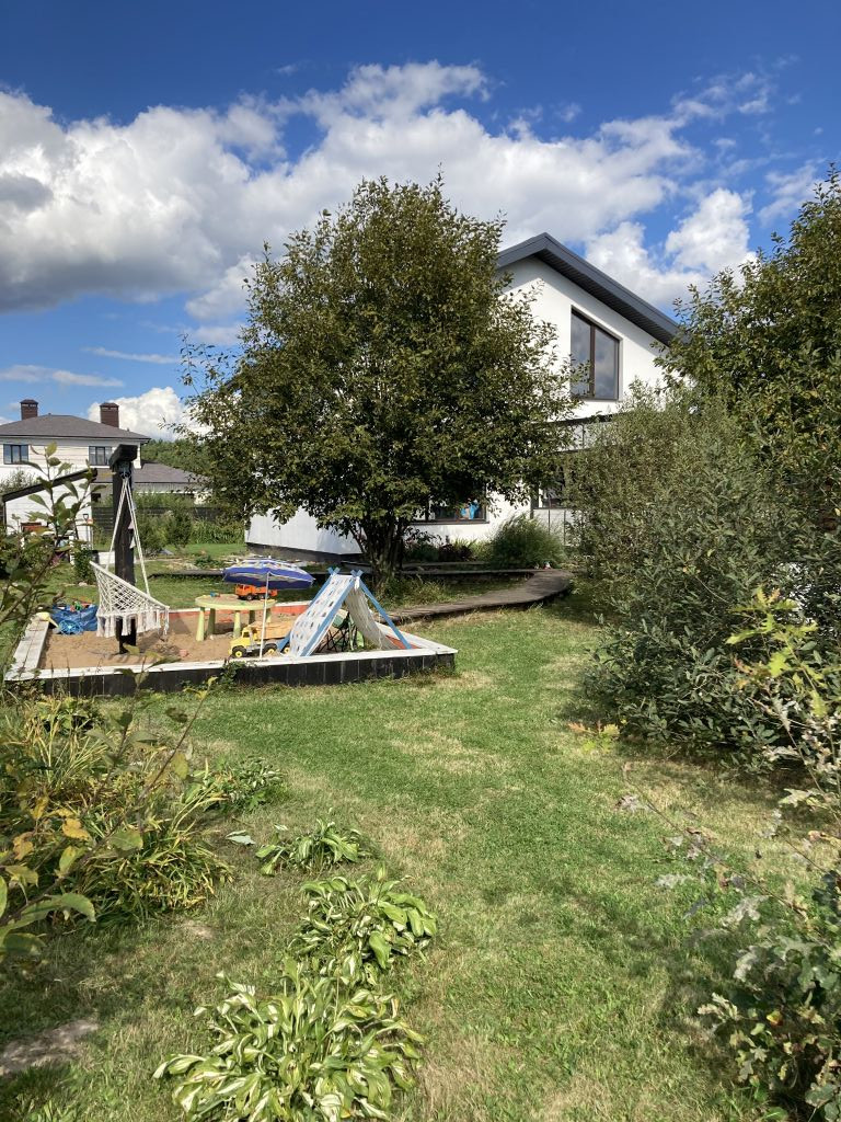 На участке - крытая терраса 20 кв.м., крытое крыльцо 10 кв.м, открытая площадка для отдыха, зона барбекю, бассейн, детская площадка, хозблок для инструмента. Участок благоустроен, на улицу выведена вода под полив газона и клумб. Ворота автоматические, освещена зона перед въездом на участок.