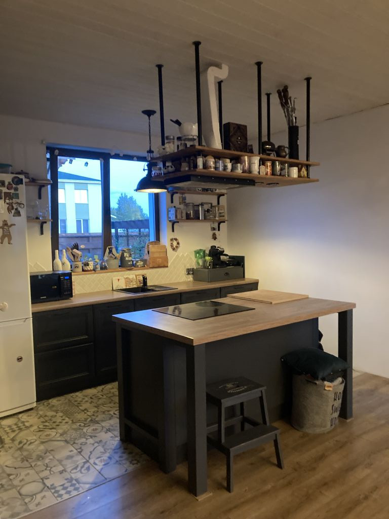 Кухня - массив ясеня. Плита и духовая печь – электрические.