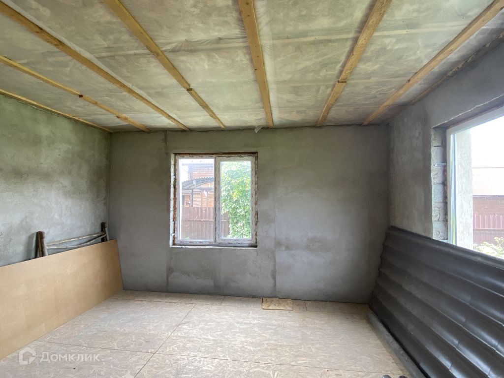 Стены - пескоцементные блоки, утеплитель 150 мм, декоративная штукатурка.