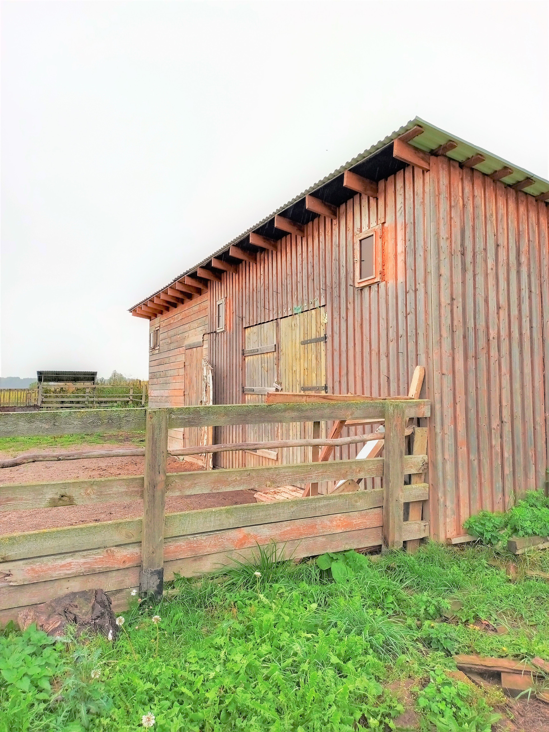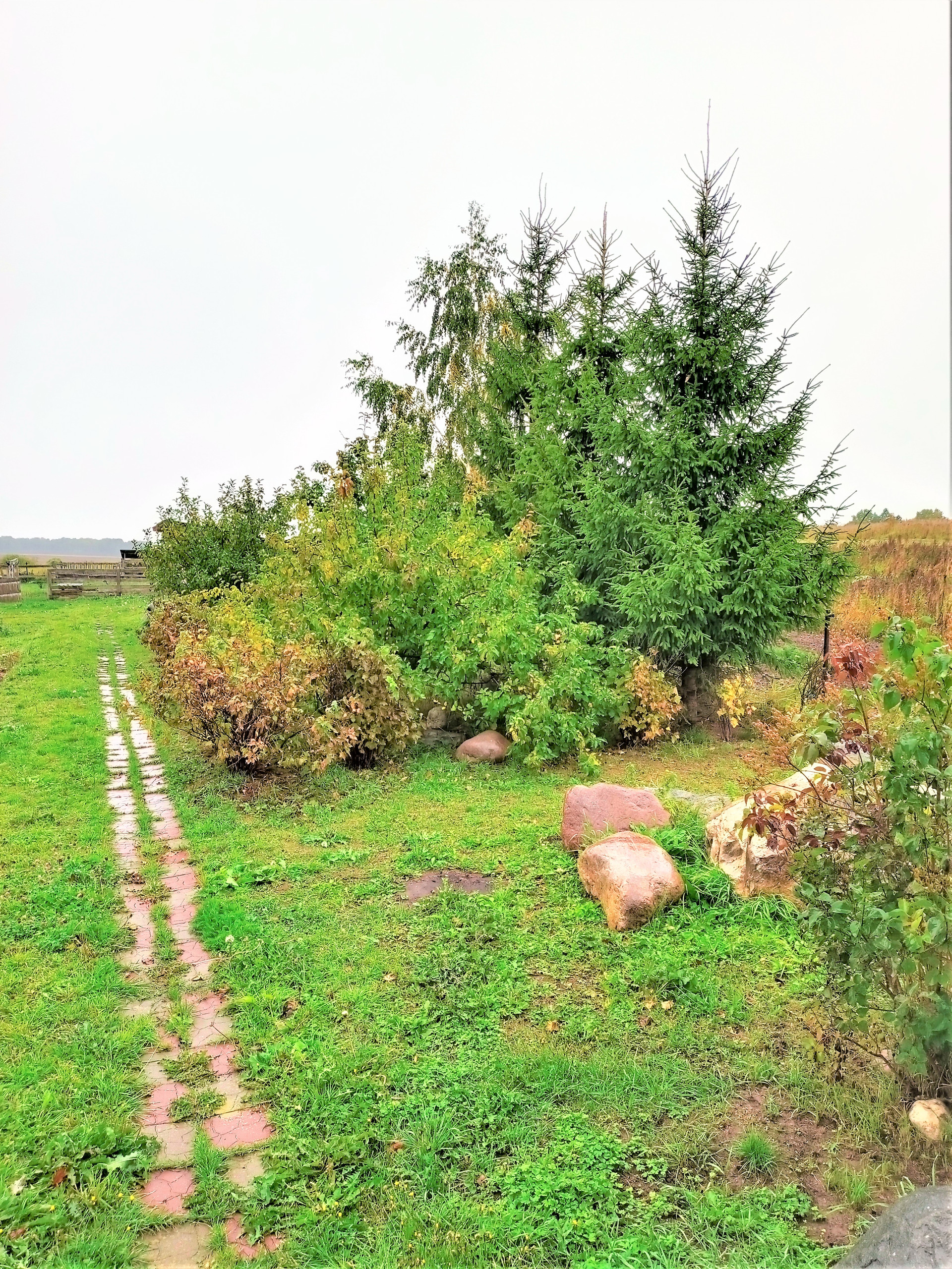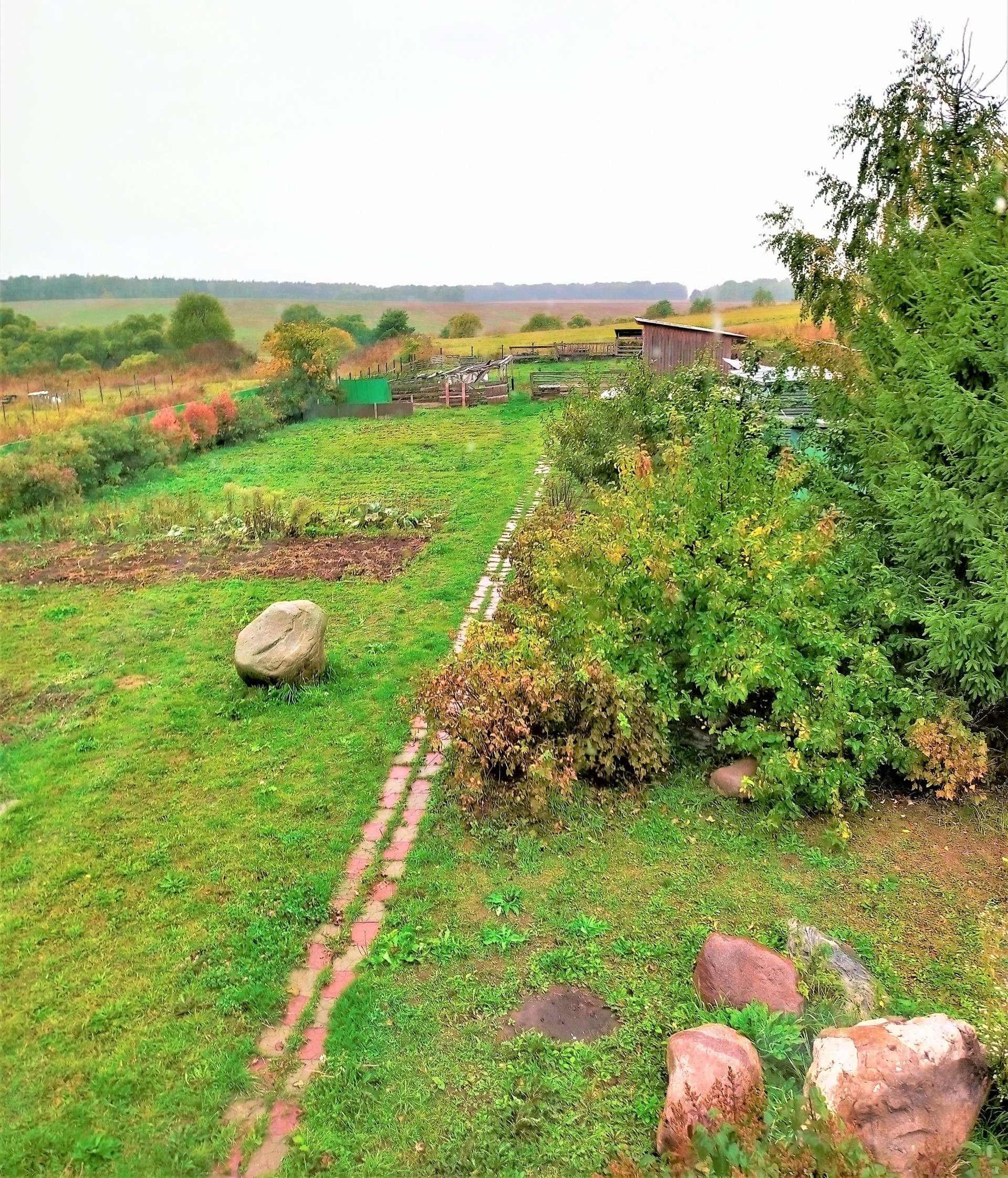 На участке сосновые деревья, хозблок с большим бетонным подвалом глубиной 3.5 метра, небольшая конюшня для 2-3 лошадей.