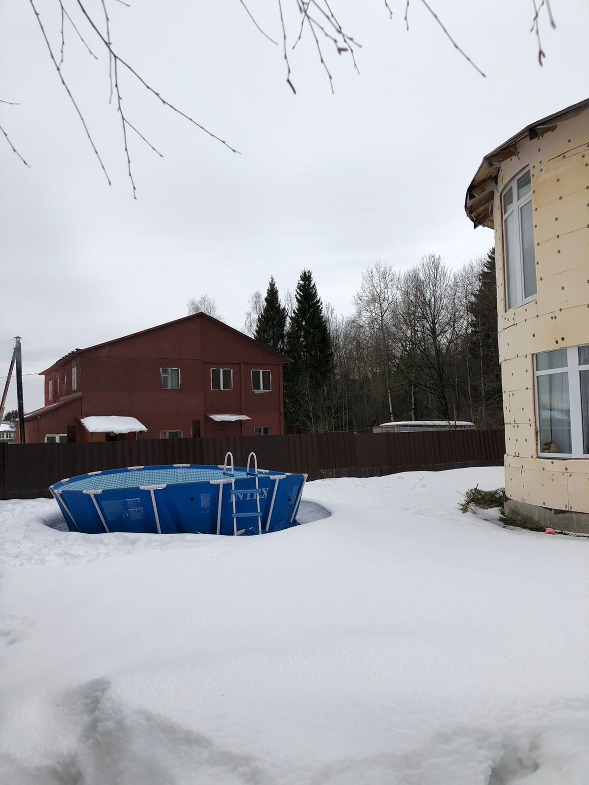 На улице бассейн.