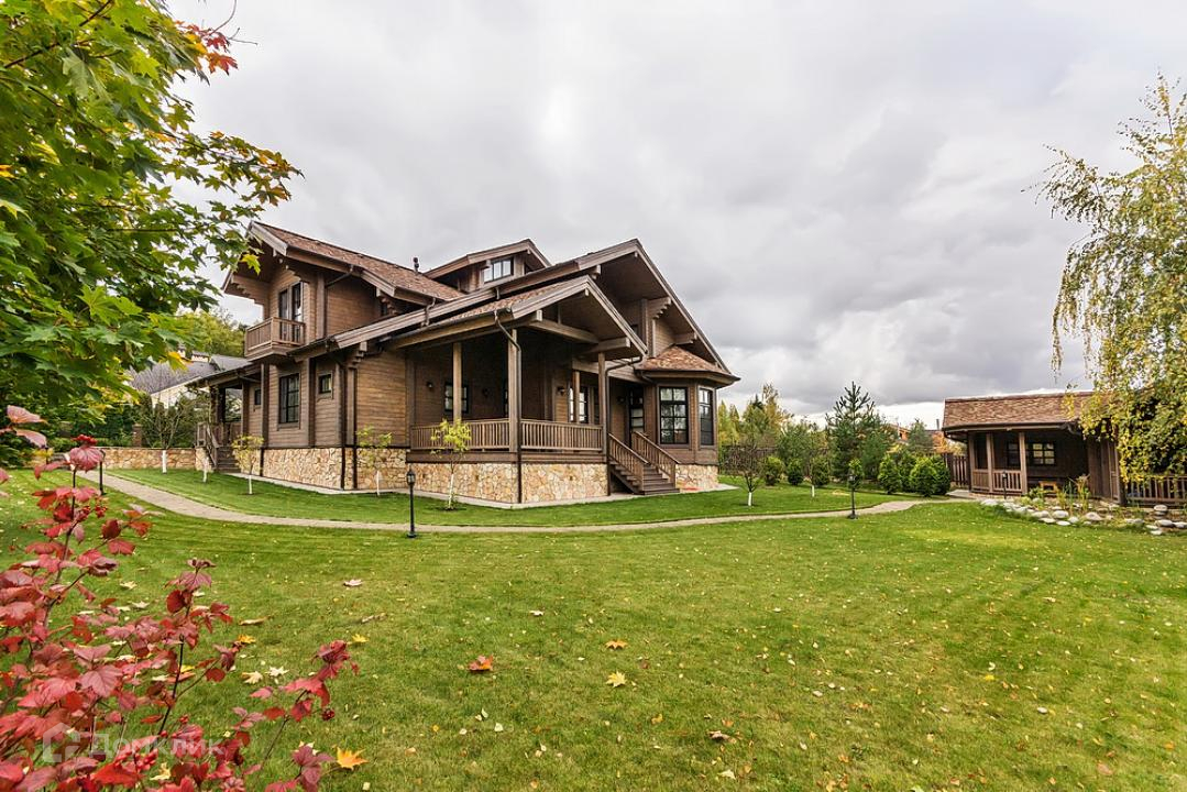 В камерном охраняемом поселке на 10 домов продается коттедж из клееного бруса на участке площадью 20 соток, расположенном на 2 линии от леса. На территории домовладения дополнительно возведены гараж на 2 м/м с квартирой для персонала на 2 этаже (120 кв. м), а также баня (85 кв. м).