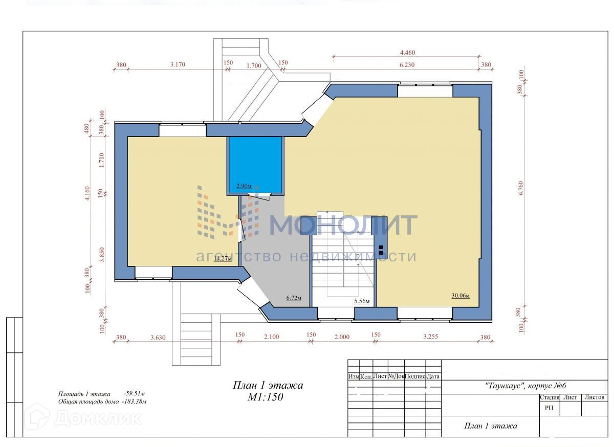 Таунхаус №6 общей площадью 183,38 м2. включает в себя: