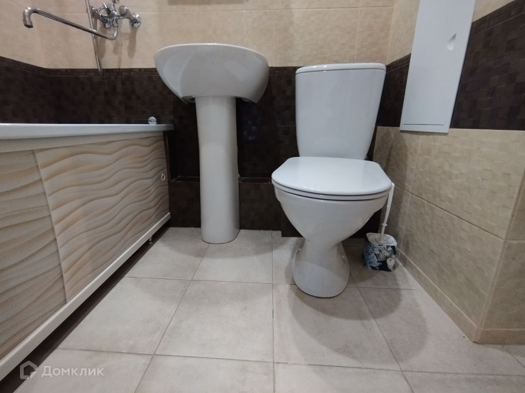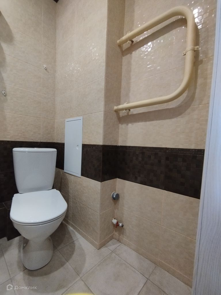 Санузел в   современной плитке. Установлена качественная   входная дверь.