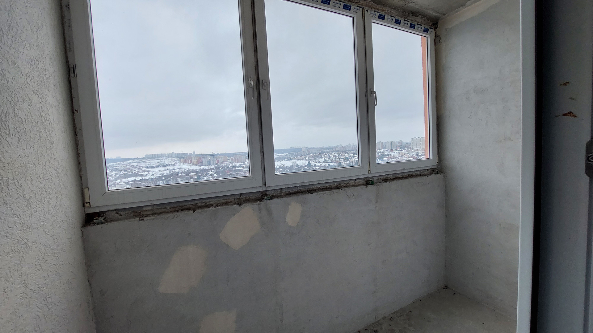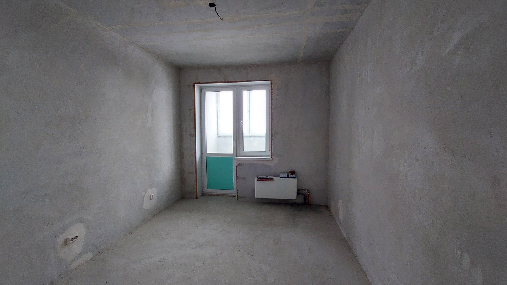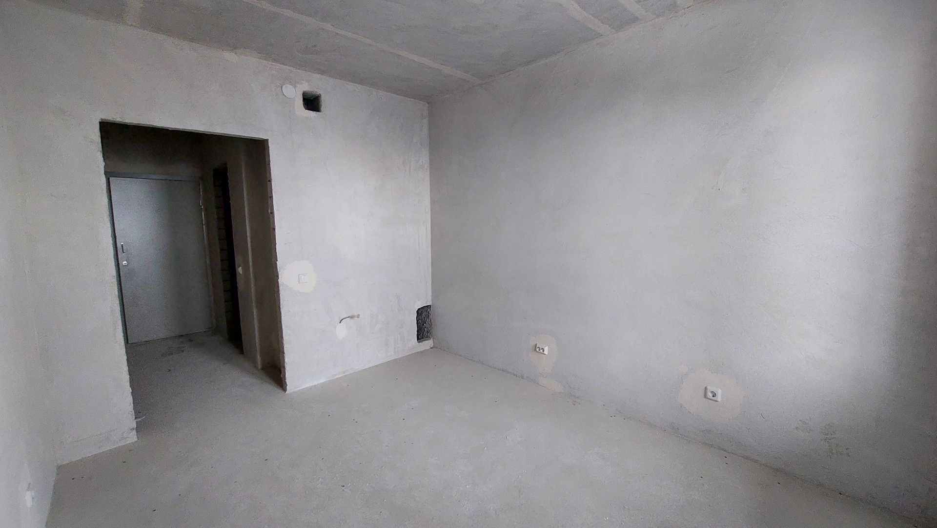 Квартира без отделки, установлены счетчики, розетки, выключатели.