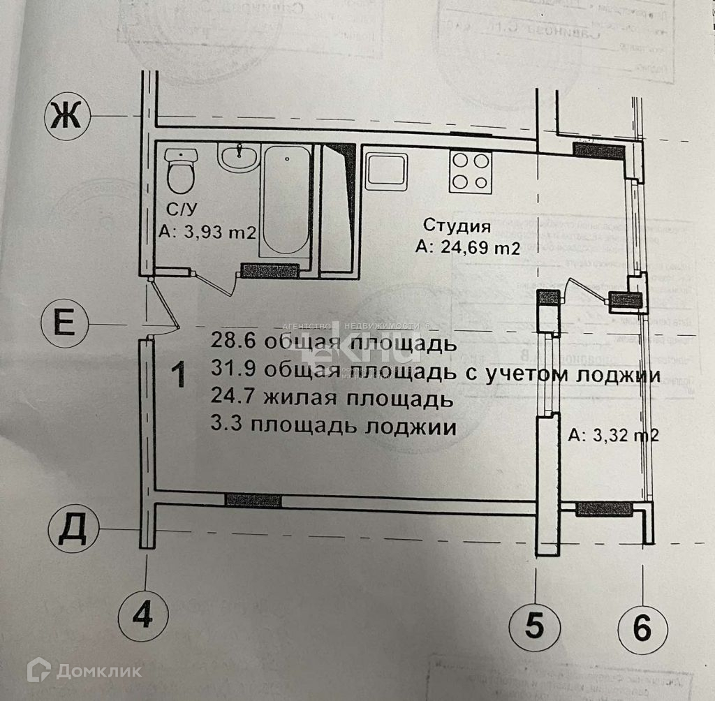 Общая площадь 29.5 м2