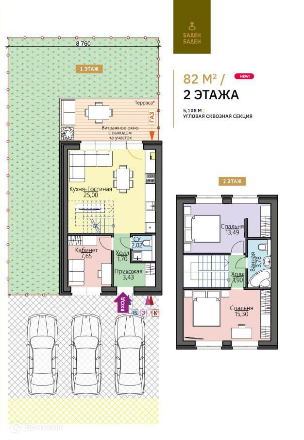 Собственный земельный участок перед квартирой с 2-метровым забором.1-2 собственных парковочных места!