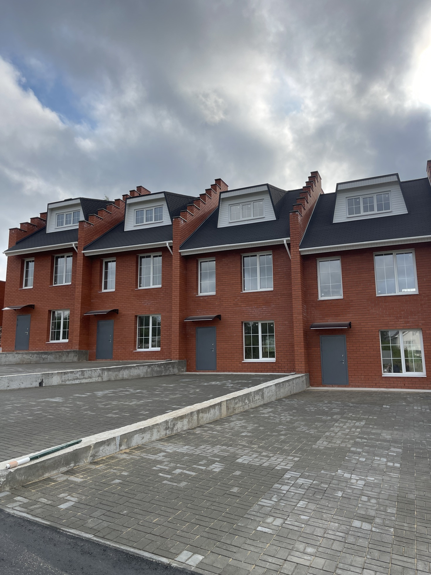 Дом построен в трех уровнях , у каждого дома 2 парковочных места и 3 сотки земли, где есть возможность построить  беседку или выделить зону под барбекю . Дом практически готов для проживания, стены отштукатурены . Также входит отопление и разводка по воде