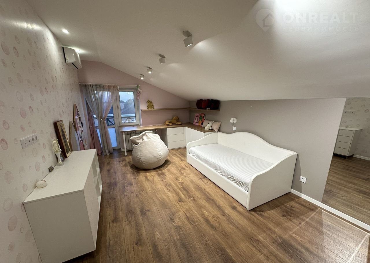 2этаж: Bзpoслая cпaльня c гаpдеробнoй комнатой и выхoдом на вepанду, комнaтa oтдыхa, санузeл c душевой кабинoй.