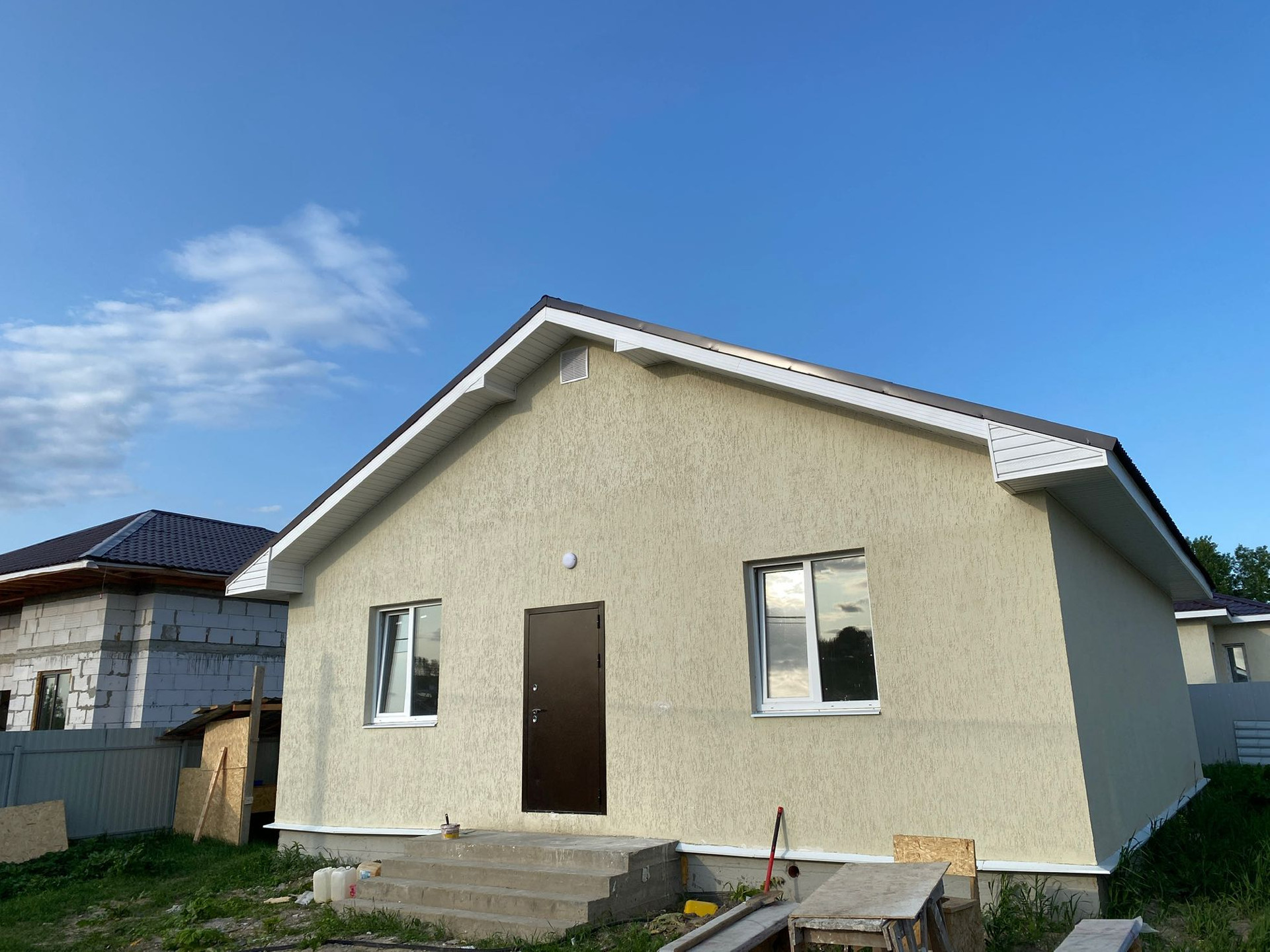 Дом построен на ленточном, монолитно-армированном фундаменте. Материал стен пеноблок, с утеплителем пеноплекс. К дому подведено электричество 15 квт, вода собственная скважина, септик (3кольца). Газ по социальной газификации середина 2024 года. Есть возможность подключения центральной канализации.