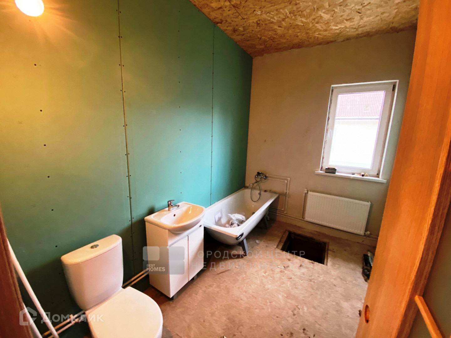 Дом на стадии завершения строительства: разведено электричество, установлены розетки, будут установлены люстры, световые выключатели; устанавливается сантехника, разведена холодная вода, горячая вода подается от бойлера. На полу застелен ламинат, установлены межкомнатные двери. Установлена система отопления с электрическим энергосберегающим котлом с разводкой на радиаторы.
