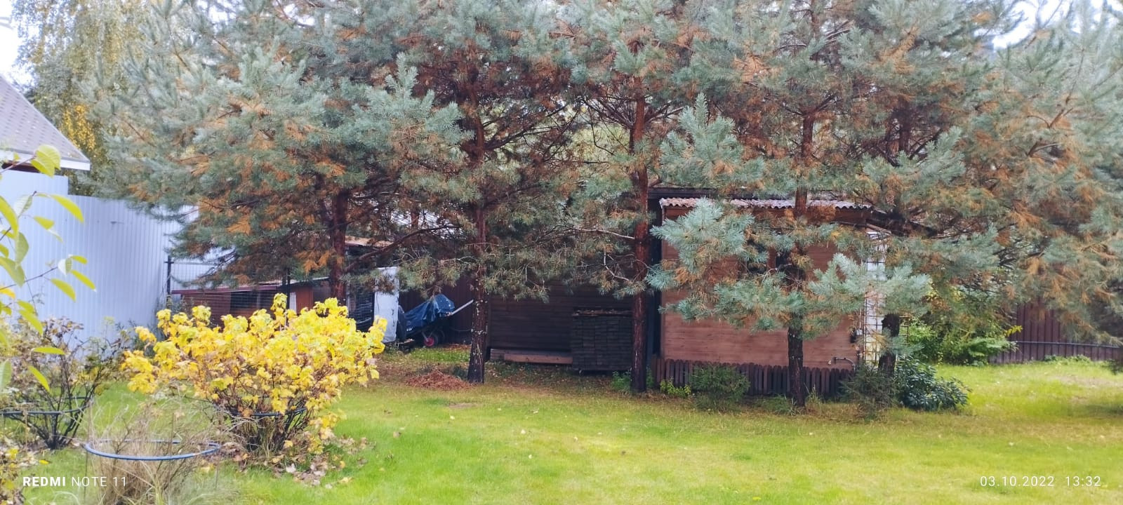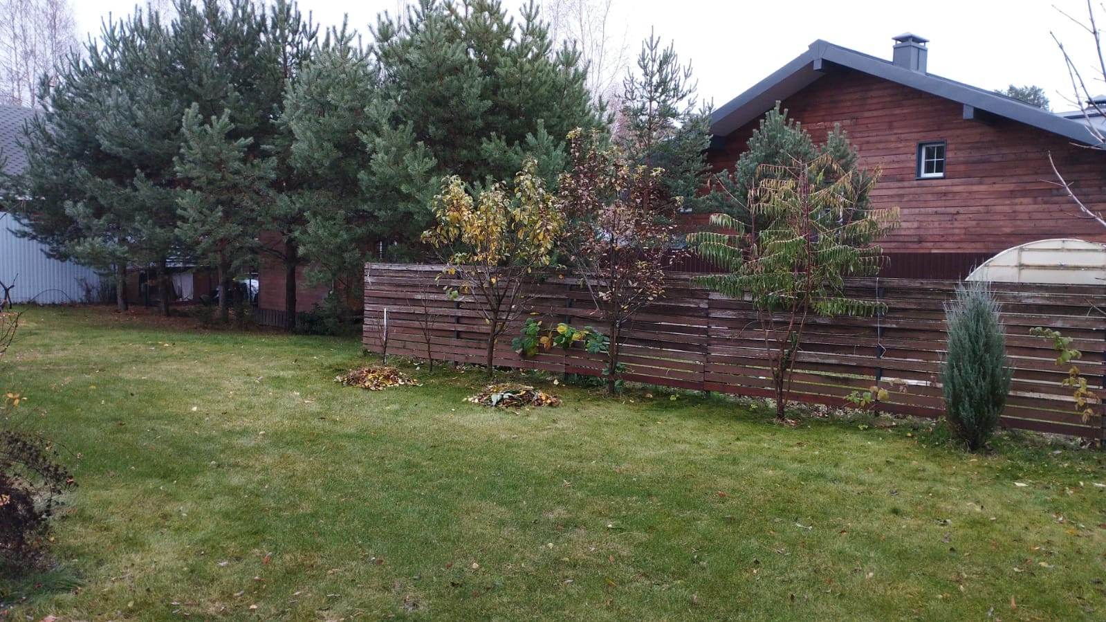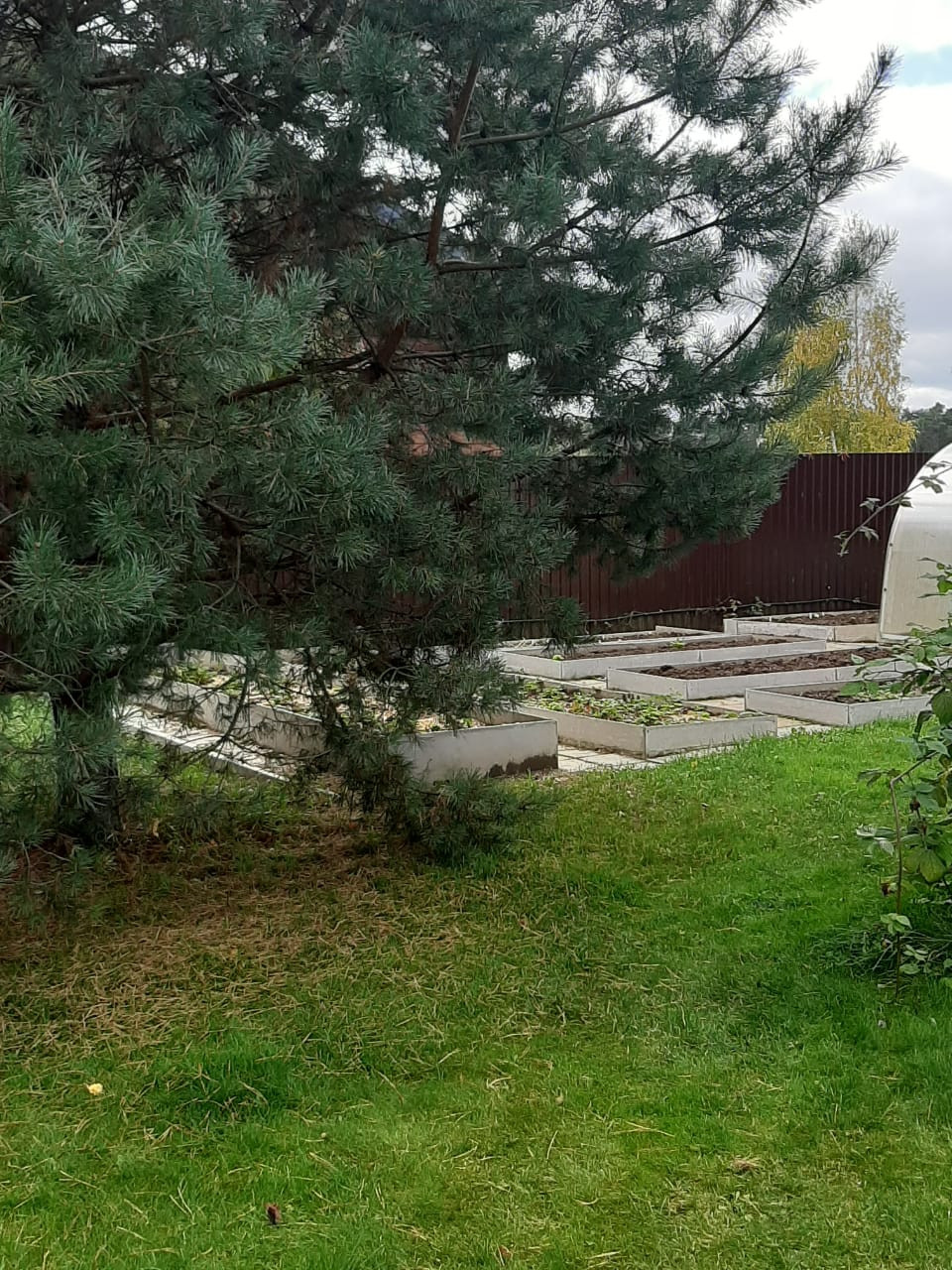 Участок имеет правильную прямоугольную форму 30х50. Огорожен со всех сторон забором из листового профнастила, высотой 2,5 м.