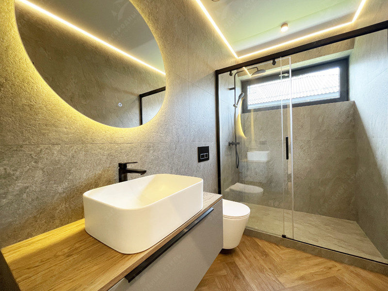 Отделка в доме выполнена по современному дизайн-проекту из качественных и долговечных материалов. Ну участке идеальное благоустройство. Есть все коммуникации: электричество, водоснабжение из скважины, септик, магистральный газ, быстрый интернет, вентиляция в каждом помещении.