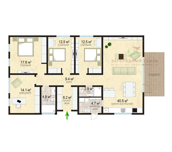 • 4 отдельные спальни от 13 до 18 м2