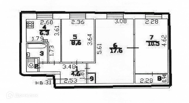Жилая площадь 36.7 м2