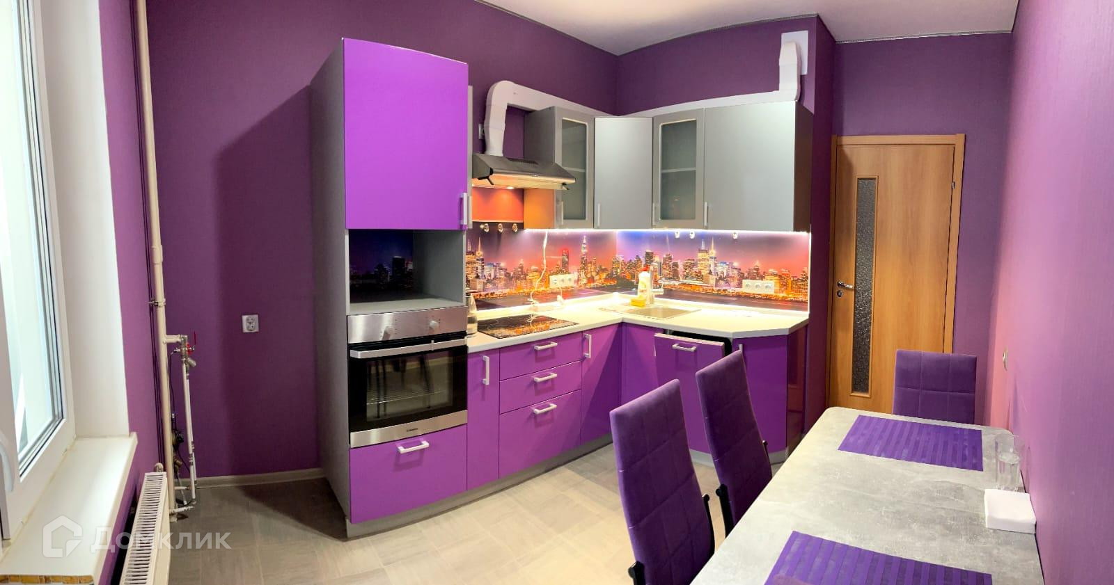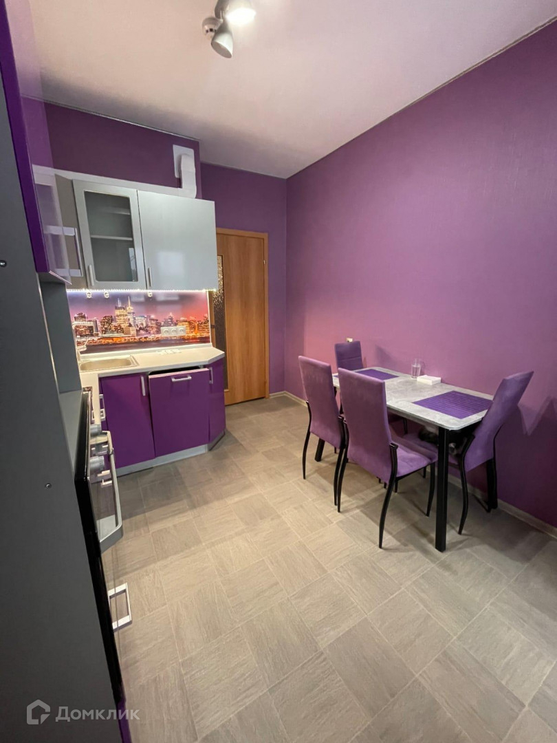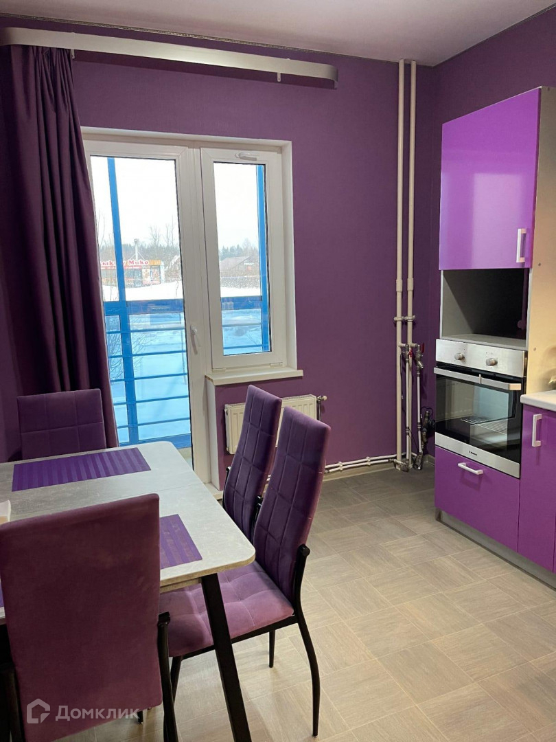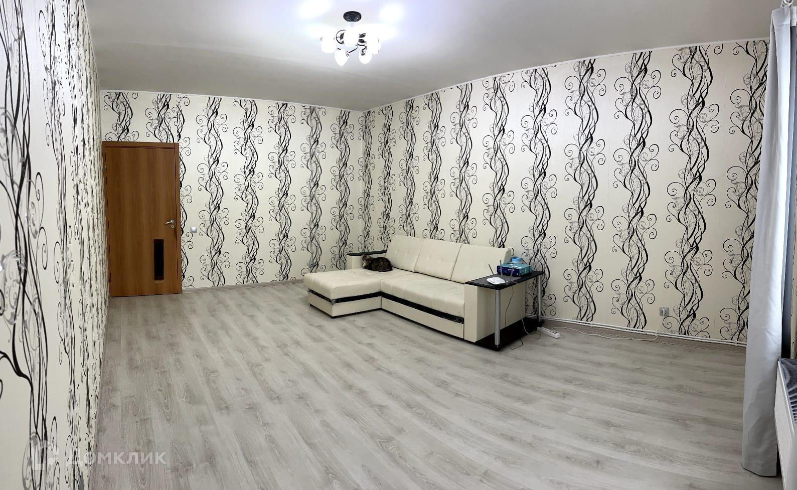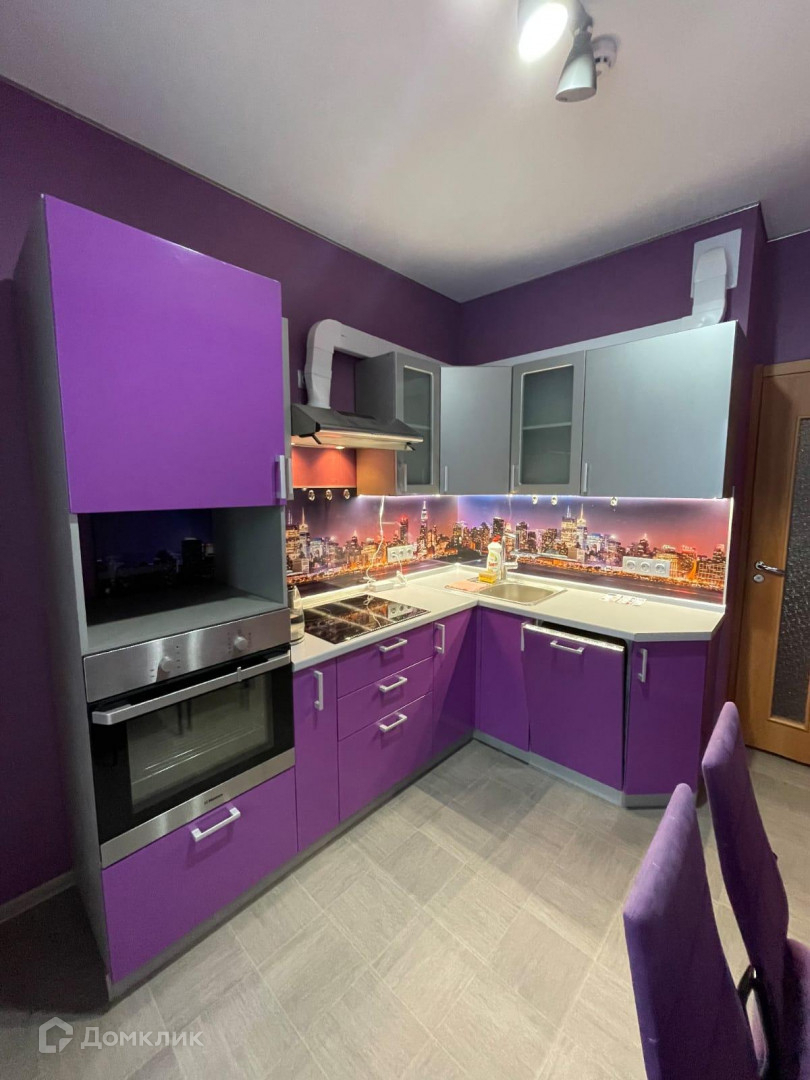 В квартире остается кухонный гарнитур, встроенная техника и диван.