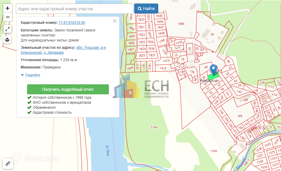Номер в базе: 30671. Номер объекта в базе 30671Продается отличный земельный участок Ижс, площадью 1230 квм, находящийся в самом экологически чистом и живописном месте Тульской области,  в деревне Айдарово, Алексинского района. Участок расположен недалеко от Оки, буквально в семи минутах пешком. В десяти минутах пешком, Вашана впадает к Оку. В деревне Айдарово, находится гостиничный комплекс, это значит что в деревню можно подъехать круглый год и проблем с газом не будет. Электричество есть, воду нужно будет сделать скважину. Звоните! Отличное предложение по адекватной стоимости!